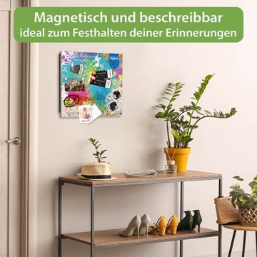 Bringe Ordnung und Eleganz in deinen Eingangsbereich mit dem banjado Schlüsselkasten Motiv Motiv Farbspritzer. Die moderne Schlüsselbox kombiniert funktionales Design mit hochwertiger Verarbeitung und wird so zu einem echten Hingucker in Flur, Büro oder Ferienwohnung. ✅ Stilvolle Schlüsselaufbewahrung mit Glasfront im Motiv Motiv Farbspritzer Der Design-Schlüsselkasten Motiv Motiv Farbspritzer bietet Platz für bis zu 50 Schlüssel, die auf 5 stabilen Reihen mit je 10 Haken übersichtlich verstaut werden. Mit seinen kompakten Maßen von 30 x 30 x 5 cm passt die Schlüsselbox perfekt auch in kleinere Räume. Der schwarz lackierte Stahlkorpus mit rechts angeschlagenem Türscharnier harmoniert mit der Glasfront und fügt sich nahtlos in jedes Wohnambiente ein. Ob als Schlüsselorganizer für Zuhause oder als praktische Lösung für Büros, Praxen und Gewerbe, der banjado Schlüsselkasten sorgt für Ordnung und Übersicht. Dank der magnetischen, mit Kreidestiften beschreibbaren Glasfront kannst du Notizen anheften oder Termine direkt auf der Oberfläche festhalten. Die Schlüsselbox Motiv Motiv Farbspritzer zur Wandmontage wird inklusive Befestigungsmaterial geliefert und ist schnell angebracht. So hast du deine Schlüssel jederzeit griffbereit und zugleich stilvoll verstaut. Mit diesem banjado Schlüsselkasten Motiv Motiv Farbspritzer kombinierst du praktische Aufbewahrung mit stilvollem Wohndesign. Ob privat oder geschäftlich, die Schlüsselbox sorgt für mehr Ordnung, Übersicht und ein wohnliches Ambiente.Vorteile im Überblick