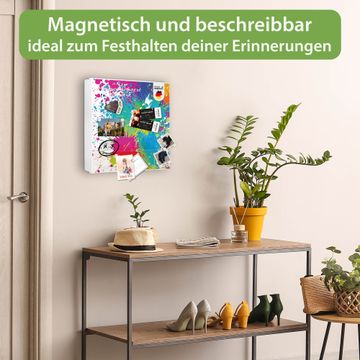 Bringe Ordnung und Eleganz in deinen Eingangsbereich mit dem banjado Schlüsselkasten Motiv Motiv Farbspritzer. Die moderne Schlüsselbox kombiniert funktionales Design mit hochwertiger Verarbeitung und wird so zu einem echten Hingucker in Flur, Büro oder Ferienwohnung. ✅ Stilvolle Schlüsselaufbewahrung mit Motiv Motiv Farbspritzer Der Design-Schlüsselkasten Motiv Motiv Farbspritzer bietet Platz für bis zu 32 Schlüssel, die auf 4 stabilen Reihen mit je 8 Haken übersichtlich verstaut werden. Mit seinen kompakten Maßen von 30 x 30 x 5 cm passt die Schlüsselbox perfekt auch in kleinere Räume. Der weiß lackierte Stahlkorpus mit links angeschlagenem Türscharnier harmoniert mit gedruckten Folie auf der Front und fügt sich nahtlos in jedes Wohnambiente ein. Ob als Schlüsselorganizer für Zuhause oder als praktische Lösung für Büros, Praxen und Gewerbe, der banjado Schlüsselkasten sorgt für Ordnung und Übersicht. Dank der magnetischen, mit Kreidestiften beschreibbaren Folie auf der Front kannst du Notizen anheften oder Termine direkt auf der Oberfläche festhalten. Die Schlüsselbox Motiv Motiv Farbspritzer zur Wandmontage wird inklusive Befestigungsmaterial geliefert und ist schnell angebracht. So hast du deine Schlüssel jederzeit griffbereit und zugleich stilvoll verstaut. Mit diesem banjado Schlüsselkasten Motiv Motiv Farbspritzer kombinierst du praktische Aufbewahrung mit stilvollem Wohndesign. Ob privat oder geschäftlich, die Schlüsselbox sorgt für mehr Ordnung, Übersicht und ein wohnliches Ambiente.Vorteile im Überblick