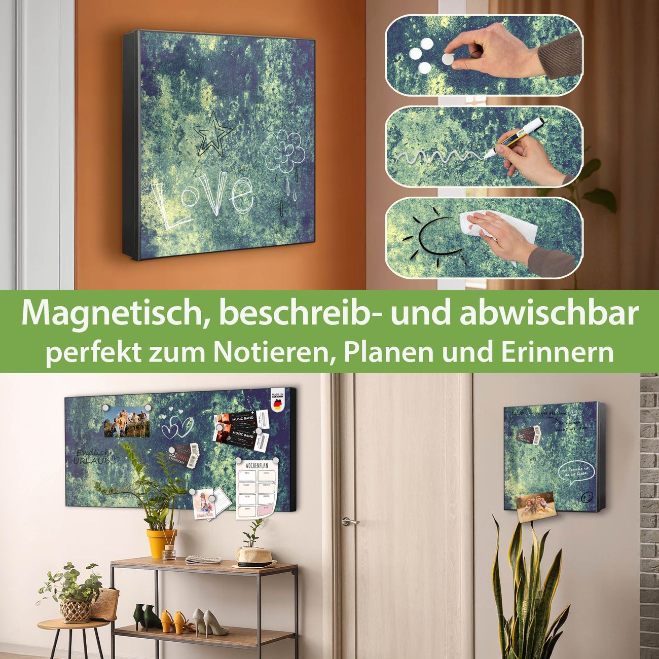 ✅ Magnetisch und mit Kreidestift beschreibbar, links angeschlagene TürOrdnung und Design in einem
