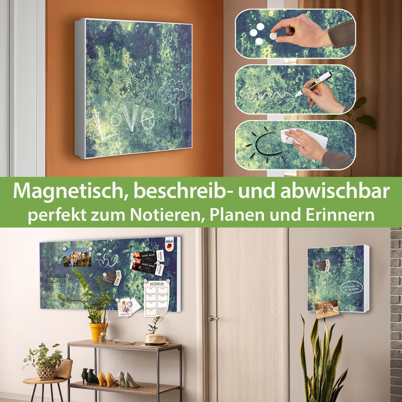 ✅ Magnetisch und mit Kreidestift beschreibbar, links angeschlagene TürOrdnung und Design in einem