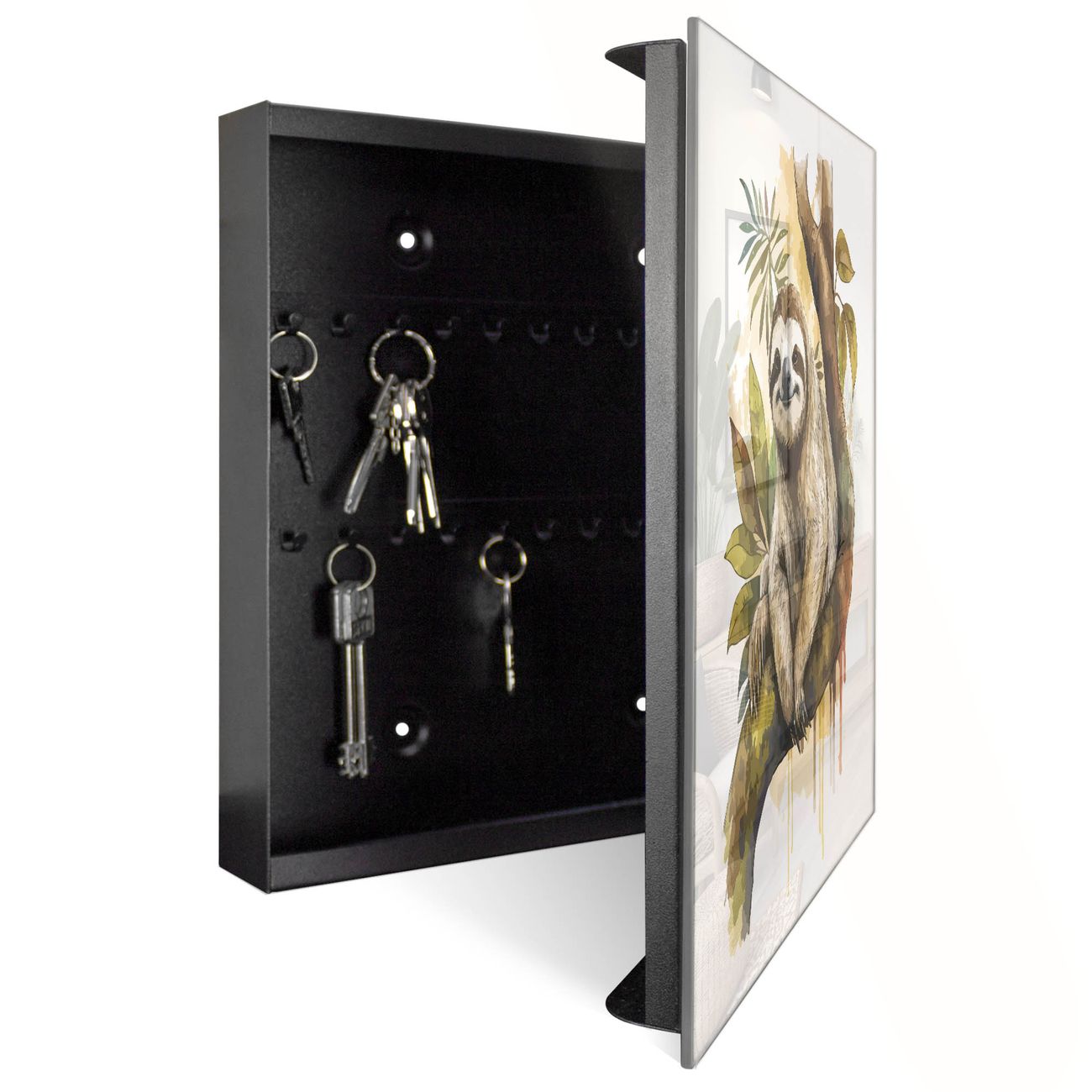Schlüsselkasten Glas Motiv Faultier mit Blütenmähne