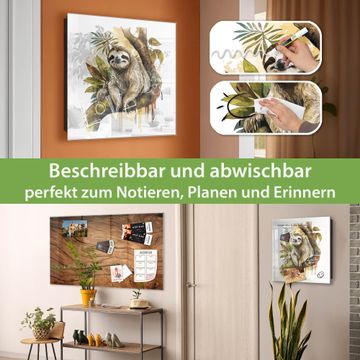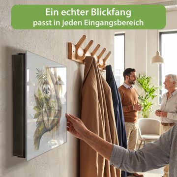 Bringe Ordnung und Eleganz in deinen Eingangsbereich mit dem banjado Schlüsselkasten Motiv Motiv Faultier im Baum. Die moderne Schlüsselbox kombiniert funktionales Design mit hochwertiger Verarbeitung und wird so zu einem echten Hingucker in Flur, Büro oder Ferienwohnung. ✅ Stilvolle Schlüsselaufbewahrung mit Glasfront im Motiv Motiv Faultier im Baum Der Design-Schlüsselkasten Motiv Motiv Faultier im Baum bietet Platz für bis zu 50 Schlüssel, die auf 5 stabilen Reihen mit je 10 Haken übersichtlich verstaut werden. Mit seinen kompakten Maßen von 30 x 30 x 5 cm passt die Schlüsselbox perfekt auch in kleinere Räume. Der schwarz lackierte Stahlkorpus mit rechts angeschlagenem Türscharnier harmoniert mit der Glasfront und fügt sich nahtlos in jedes Wohnambiente ein. Ob als Schlüsselorganizer für Zuhause oder als praktische Lösung für Büros, Praxen und Gewerbe, der banjado Schlüsselkasten sorgt für Ordnung und Übersicht. Dank der magnetischen, mit Kreidestiften beschreibbaren Glasfront kannst du Notizen anheften oder Termine direkt auf der Oberfläche festhalten. Die Schlüsselbox Motiv Motiv Faultier im Baum zur Wandmontage wird inklusive Befestigungsmaterial geliefert und ist schnell angebracht. So hast du deine Schlüssel jederzeit griffbereit und zugleich stilvoll verstaut. Mit diesem banjado Schlüsselkasten Motiv Motiv Faultier im Baum kombinierst du praktische Aufbewahrung mit stilvollem Wohndesign. Ob privat oder geschäftlich, die Schlüsselbox sorgt für mehr Ordnung, Übersicht und ein wohnliches Ambiente.Vorteile im Überblick