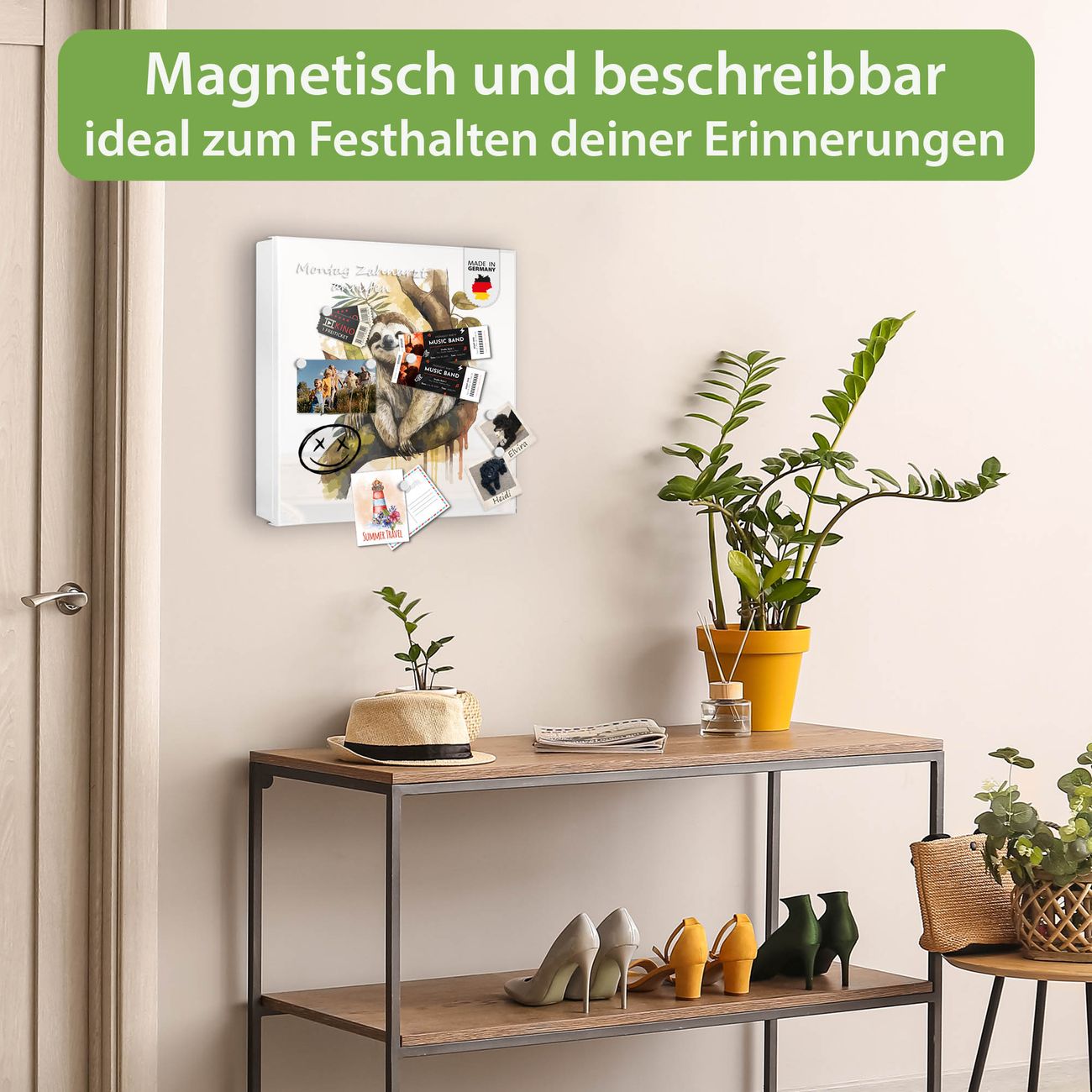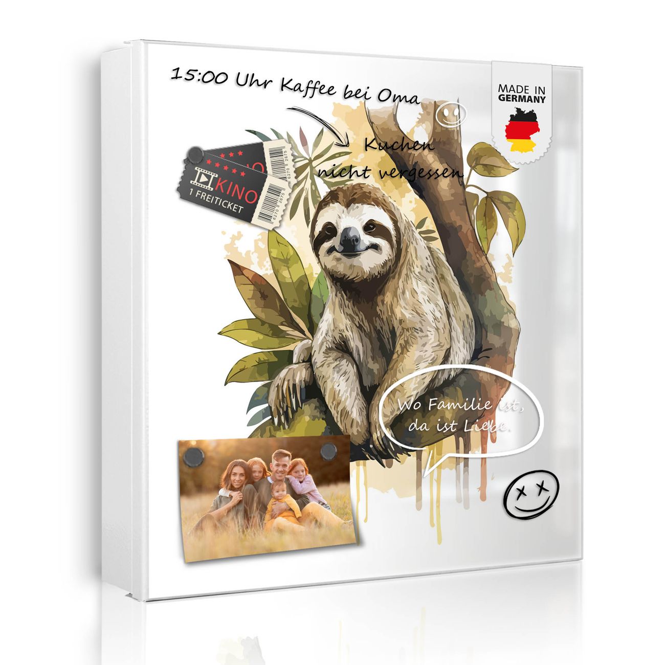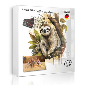 Bringe Ordnung und Eleganz in deinen Eingangsbereich mit dem banjado Schlüsselkasten Motiv Motiv Faultier mit Blütenmähne. Die moderne Schlüsselbox kombiniert funktionales Design mit hochwertiger Verarbeitung und wird so zu einem echten Hingucker in Flur, Büro oder Ferienwohnung. ✅ Stilvolle Schlüsselaufbewahrung mit Motiv Motiv Faultier mit Blütenmähne Der Design-Schlüsselkasten Motiv Motiv Faultier mit Blütenmähne bietet Platz für bis zu 32 Schlüssel, die auf 4 stabilen Reihen mit je 8 Haken übersichtlich verstaut werden. Mit seinen kompakten Maßen von 30 x 30 x 5 cm passt die Schlüsselbox perfekt auch in kleinere Räume. Der weiß lackierte Stahlkorpus mit links angeschlagenem Türscharnier harmoniert mit gedruckten Folie auf der Front und fügt sich nahtlos in jedes Wohnambiente ein. Ob als Schlüsselorganizer für Zuhause oder als praktische Lösung für Büros, Praxen und Gewerbe, der banjado Schlüsselkasten sorgt für Ordnung und Übersicht. Dank der magnetischen, mit Kreidestiften beschreibbaren Folie auf der Front kannst du Notizen anheften oder Termine direkt auf der Oberfläche festhalten. Die Schlüsselbox Motiv Motiv Faultier mit Blütenmähne zur Wandmontage wird inklusive Befestigungsmaterial geliefert und ist schnell angebracht. So hast du deine Schlüssel jederzeit griffbereit und zugleich stilvoll verstaut. Mit diesem banjado Schlüsselkasten Motiv Motiv Faultier mit Blütenmähne kombinierst du praktische Aufbewahrung mit stilvollem Wohndesign. Ob privat oder geschäftlich, die Schlüsselbox sorgt für mehr Ordnung, Übersicht und ein wohnliches Ambiente.Vorteile im Überblick