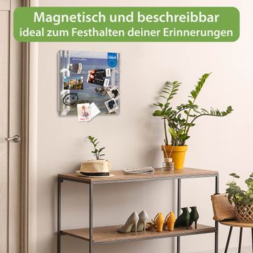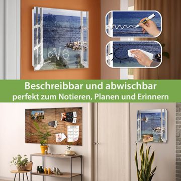 Bringe Ordnung und Eleganz in deinen Eingangsbereich mit dem banjado Schlüsselkasten Motiv Motiv Fensterpanorama. Die moderne Schlüsselbox kombiniert funktionales Design mit hochwertiger Verarbeitung und wird so zu einem echten Hingucker in Flur, Büro oder Ferienwohnung. ✅ Stilvolle Schlüsselaufbewahrung mit Glasfront im Motiv Motiv Fensterpanorama Der Design-Schlüsselkasten Motiv Motiv Fensterpanorama bietet Platz für bis zu 50 Schlüssel, die auf 5 stabilen Reihen mit je 10 Haken übersichtlich verstaut werden. Mit seinen kompakten Maßen von 30 x 30 x 5 cm passt die Schlüsselbox perfekt auch in kleinere Räume. Der weiß lackierte Stahlkorpus mit rechts angeschlagenem Türscharnier harmoniert mit der Glasfront und fügt sich nahtlos in jedes Wohnambiente ein. Ob als Schlüsselorganizer für Zuhause oder als praktische Lösung für Büros, Praxen und Gewerbe, der banjado Schlüsselkasten sorgt für Ordnung und Übersicht. Dank der magnetischen, mit Kreidestiften beschreibbaren Glasfront kannst du Notizen anheften oder Termine direkt auf der Oberfläche festhalten. Die Schlüsselbox Motiv Motiv Fensterpanorama zur Wandmontage wird inklusive Befestigungsmaterial geliefert und ist schnell angebracht. So hast du deine Schlüssel jederzeit griffbereit und zugleich stilvoll verstaut. Mit diesem banjado Schlüsselkasten Motiv Motiv Fensterpanorama kombinierst du praktische Aufbewahrung mit stilvollem Wohndesign. Ob privat oder geschäftlich, die Schlüsselbox sorgt für mehr Ordnung, Übersicht und ein wohnliches Ambiente.Vorteile im Überblick