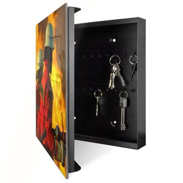 Bringe Ordnung und Eleganz in deinen Eingangsbereich mit dem banjado Schlüsselkasten Motiv Motiv Feuer. Die moderne Schlüsselbox kombiniert funktionales Design mit hochwertiger Verarbeitung und wird so zu einem echten Hingucker in Flur, Büro oder Ferienwohnung. ✅ Stilvolle Schlüsselaufbewahrung mit Glasfront im Motiv Motiv Feuer Der Design-Schlüsselkasten Motiv Motiv Feuer bietet Platz für bis zu 50 Schlüssel, die auf 5 stabilen Reihen mit je 10 Haken übersichtlich verstaut werden. Mit seinen kompakten Maßen von 30 x 30 x 5 cm passt die Schlüsselbox perfekt auch in kleinere Räume. Der schwarz lackierte Stahlkorpus mit rechts angeschlagenem Türscharnier harmoniert mit der Glasfront und fügt sich nahtlos in jedes Wohnambiente ein. Ob als Schlüsselorganizer für Zuhause oder als praktische Lösung für Büros, Praxen und Gewerbe, der banjado Schlüsselkasten sorgt für Ordnung und Übersicht. Dank der magnetischen, mit Kreidestiften beschreibbaren Glasfront kannst du Notizen anheften oder Termine direkt auf der Oberfläche festhalten. Die Schlüsselbox Motiv Motiv Feuer zur Wandmontage wird inklusive Befestigungsmaterial geliefert und ist schnell angebracht. So hast du deine Schlüssel jederzeit griffbereit und zugleich stilvoll verstaut. Mit diesem banjado Schlüsselkasten Motiv Motiv Feuer kombinierst du praktische Aufbewahrung mit stilvollem Wohndesign. Ob privat oder geschäftlich, die Schlüsselbox sorgt für mehr Ordnung, Übersicht und ein wohnliches Ambiente.Vorteile im Überblick