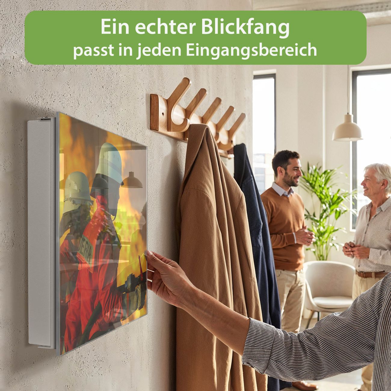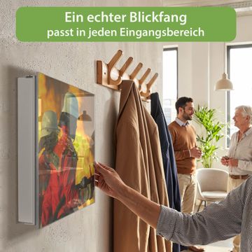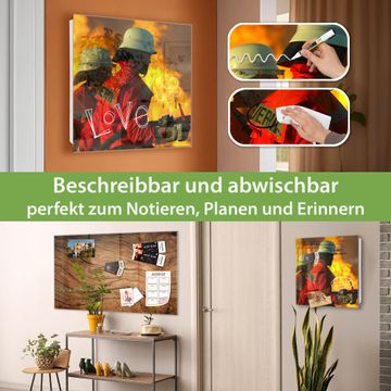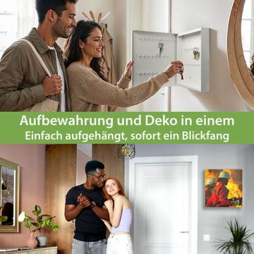 Bringe Ordnung und Eleganz in deinen Eingangsbereich mit dem banjado Schlüsselkasten Motiv Motiv Feuer. Die moderne Schlüsselbox kombiniert funktionales Design mit hochwertiger Verarbeitung und wird so zu einem echten Hingucker in Flur, Büro oder Ferienwohnung. ✅ Stilvolle Schlüsselaufbewahrung mit Glasfront im Motiv Motiv Feuer Der Design-Schlüsselkasten Motiv Motiv Feuer bietet Platz für bis zu 50 Schlüssel, die auf 5 stabilen Reihen mit je 10 Haken übersichtlich verstaut werden. Mit seinen kompakten Maßen von 30 x 30 x 5 cm passt die Schlüsselbox perfekt auch in kleinere Räume. Der weiß lackierte Stahlkorpus mit rechts angeschlagenem Türscharnier harmoniert mit der Glasfront und fügt sich nahtlos in jedes Wohnambiente ein. Ob als Schlüsselorganizer für Zuhause oder als praktische Lösung für Büros, Praxen und Gewerbe, der banjado Schlüsselkasten sorgt für Ordnung und Übersicht. Dank der magnetischen, mit Kreidestiften beschreibbaren Glasfront kannst du Notizen anheften oder Termine direkt auf der Oberfläche festhalten. Die Schlüsselbox Motiv Motiv Feuer zur Wandmontage wird inklusive Befestigungsmaterial geliefert und ist schnell angebracht. So hast du deine Schlüssel jederzeit griffbereit und zugleich stilvoll verstaut. Mit diesem banjado Schlüsselkasten Motiv Motiv Feuer kombinierst du praktische Aufbewahrung mit stilvollem Wohndesign. Ob privat oder geschäftlich, die Schlüsselbox sorgt für mehr Ordnung, Übersicht und ein wohnliches Ambiente.Vorteile im Überblick