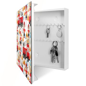 Bringe Ordnung und Eleganz in deinen Eingangsbereich mit dem banjado Schlüsselkasten Motiv Motiv Feuerwehr. Die moderne Schlüsselbox kombiniert funktionales Design mit hochwertiger Verarbeitung und wird so zu einem echten Hingucker in Flur, Büro oder Ferienwohnung. ✅ Stilvolle Schlüsselaufbewahrung mit Glasfront im Motiv Motiv Feuerwehr Der Design-Schlüsselkasten Motiv Motiv Feuerwehr bietet Platz für bis zu 50 Schlüssel, die auf 5 stabilen Reihen mit je 10 Haken übersichtlich verstaut werden. Mit seinen kompakten Maßen von 30 x 30 x 5 cm passt die Schlüsselbox perfekt auch in kleinere Räume. Der weiß lackierte Stahlkorpus mit rechts angeschlagenem Türscharnier harmoniert mit der Glasfront und fügt sich nahtlos in jedes Wohnambiente ein. Ob als Schlüsselorganizer für Zuhause oder als praktische Lösung für Büros, Praxen und Gewerbe, der banjado Schlüsselkasten sorgt für Ordnung und Übersicht. Dank der magnetischen, mit Kreidestiften beschreibbaren Glasfront kannst du Notizen anheften oder Termine direkt auf der Oberfläche festhalten. Die Schlüsselbox Motiv Motiv Feuerwehr zur Wandmontage wird inklusive Befestigungsmaterial geliefert und ist schnell angebracht. So hast du deine Schlüssel jederzeit griffbereit und zugleich stilvoll verstaut. Mit diesem banjado Schlüsselkasten Motiv Motiv Feuerwehr kombinierst du praktische Aufbewahrung mit stilvollem Wohndesign. Ob privat oder geschäftlich, die Schlüsselbox sorgt für mehr Ordnung, Übersicht und ein wohnliches Ambiente.Vorteile im Überblick
