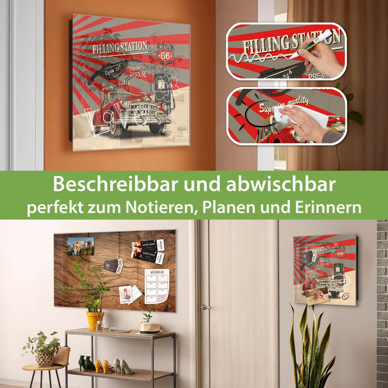 ✅ Magnetisch und mit Kreidestift beschreibbar, gehärtetes Glas, rechts angeschlagene TürOrdnung und Design in einem
