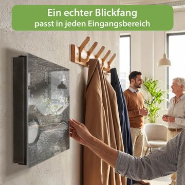 Bringe Ordnung und Eleganz in deinen Eingangsbereich mit dem banjado Schlüsselkasten Motiv Motiv Fisch Und Salz. Die moderne Schlüsselbox kombiniert funktionales Design mit hochwertiger Verarbeitung und wird so zu einem echten Hingucker in Flur, Büro oder Ferienwohnung. ✅ Stilvolle Schlüsselaufbewahrung mit Glasfront im Motiv Motiv Fisch Und Salz Der Design-Schlüsselkasten Motiv Motiv Fisch Und Salz bietet Platz für bis zu 50 Schlüssel, die auf 5 stabilen Reihen mit je 10 Haken übersichtlich verstaut werden. Mit seinen kompakten Maßen von 30 x 30 x 5 cm passt die Schlüsselbox perfekt auch in kleinere Räume. Der schwarz lackierte Stahlkorpus mit rechts angeschlagenem Türscharnier harmoniert mit der Glasfront und fügt sich nahtlos in jedes Wohnambiente ein. Ob als Schlüsselorganizer für Zuhause oder als praktische Lösung für Büros, Praxen und Gewerbe, der banjado Schlüsselkasten sorgt für Ordnung und Übersicht. Dank der magnetischen, mit Kreidestiften beschreibbaren Glasfront kannst du Notizen anheften oder Termine direkt auf der Oberfläche festhalten. Die Schlüsselbox Motiv Motiv Fisch Und Salz zur Wandmontage wird inklusive Befestigungsmaterial geliefert und ist schnell angebracht. So hast du deine Schlüssel jederzeit griffbereit und zugleich stilvoll verstaut. Mit diesem banjado Schlüsselkasten Motiv Motiv Fisch Und Salz kombinierst du praktische Aufbewahrung mit stilvollem Wohndesign. Ob privat oder geschäftlich, die Schlüsselbox sorgt für mehr Ordnung, Übersicht und ein wohnliches Ambiente.Vorteile im Überblick