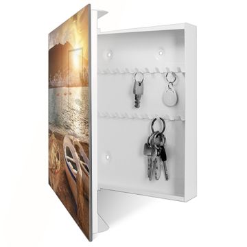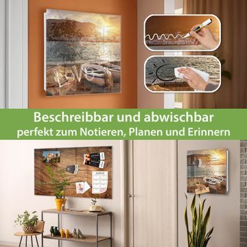 Bringe Ordnung und Eleganz in deinen Eingangsbereich mit dem banjado Schlüsselkasten Motiv Motiv Fischerboote. Die moderne Schlüsselbox kombiniert funktionales Design mit hochwertiger Verarbeitung und wird so zu einem echten Hingucker in Flur, Büro oder Ferienwohnung. ✅ Stilvolle Schlüsselaufbewahrung mit Glasfront im Motiv Motiv Fischerboote Der Design-Schlüsselkasten Motiv Motiv Fischerboote bietet Platz für bis zu 50 Schlüssel, die auf 5 stabilen Reihen mit je 10 Haken übersichtlich verstaut werden. Mit seinen kompakten Maßen von 30 x 30 x 5 cm passt die Schlüsselbox perfekt auch in kleinere Räume. Der weiß lackierte Stahlkorpus mit rechts angeschlagenem Türscharnier harmoniert mit der Glasfront und fügt sich nahtlos in jedes Wohnambiente ein. Ob als Schlüsselorganizer für Zuhause oder als praktische Lösung für Büros, Praxen und Gewerbe, der banjado Schlüsselkasten sorgt für Ordnung und Übersicht. Dank der magnetischen, mit Kreidestiften beschreibbaren Glasfront kannst du Notizen anheften oder Termine direkt auf der Oberfläche festhalten. Die Schlüsselbox Motiv Motiv Fischerboote zur Wandmontage wird inklusive Befestigungsmaterial geliefert und ist schnell angebracht. So hast du deine Schlüssel jederzeit griffbereit und zugleich stilvoll verstaut. Mit diesem banjado Schlüsselkasten Motiv Motiv Fischerboote kombinierst du praktische Aufbewahrung mit stilvollem Wohndesign. Ob privat oder geschäftlich, die Schlüsselbox sorgt für mehr Ordnung, Übersicht und ein wohnliches Ambiente.Vorteile im Überblick