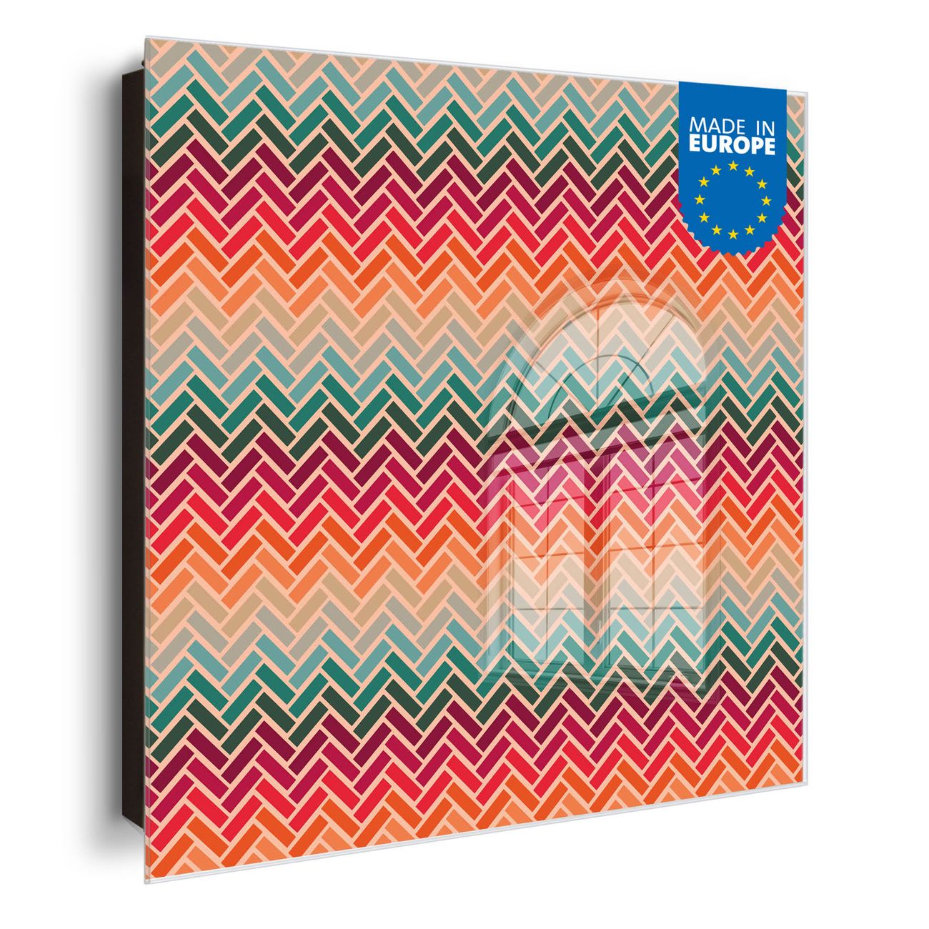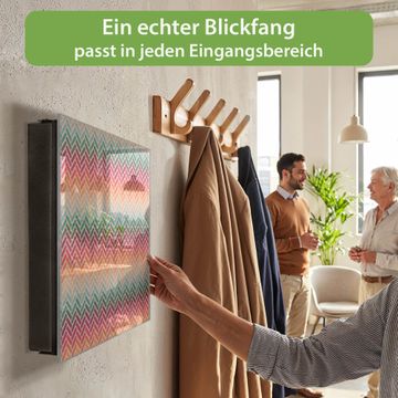 Bringe Ordnung und Eleganz in deinen Eingangsbereich mit dem banjado Schlüsselkasten Motiv Motiv Fischgräten. Die moderne Schlüsselbox kombiniert funktionales Design mit hochwertiger Verarbeitung und wird so zu einem echten Hingucker in Flur, Büro oder Ferienwohnung. ✅ Stilvolle Schlüsselaufbewahrung mit Glasfront im Motiv Motiv Fischgräten Der Design-Schlüsselkasten Motiv Motiv Fischgräten bietet Platz für bis zu 50 Schlüssel, die auf 5 stabilen Reihen mit je 10 Haken übersichtlich verstaut werden. Mit seinen kompakten Maßen von 30 x 30 x 5 cm passt die Schlüsselbox perfekt auch in kleinere Räume. Der schwarz lackierte Stahlkorpus mit rechts angeschlagenem Türscharnier harmoniert mit der Glasfront und fügt sich nahtlos in jedes Wohnambiente ein. Ob als Schlüsselorganizer für Zuhause oder als praktische Lösung für Büros, Praxen und Gewerbe, der banjado Schlüsselkasten sorgt für Ordnung und Übersicht. Dank der magnetischen, mit Kreidestiften beschreibbaren Glasfront kannst du Notizen anheften oder Termine direkt auf der Oberfläche festhalten. Die Schlüsselbox Motiv Motiv Fischgräten zur Wandmontage wird inklusive Befestigungsmaterial geliefert und ist schnell angebracht. So hast du deine Schlüssel jederzeit griffbereit und zugleich stilvoll verstaut. Mit diesem banjado Schlüsselkasten Motiv Motiv Fischgräten kombinierst du praktische Aufbewahrung mit stilvollem Wohndesign. Ob privat oder geschäftlich, die Schlüsselbox sorgt für mehr Ordnung, Übersicht und ein wohnliches Ambiente.Vorteile im Überblick