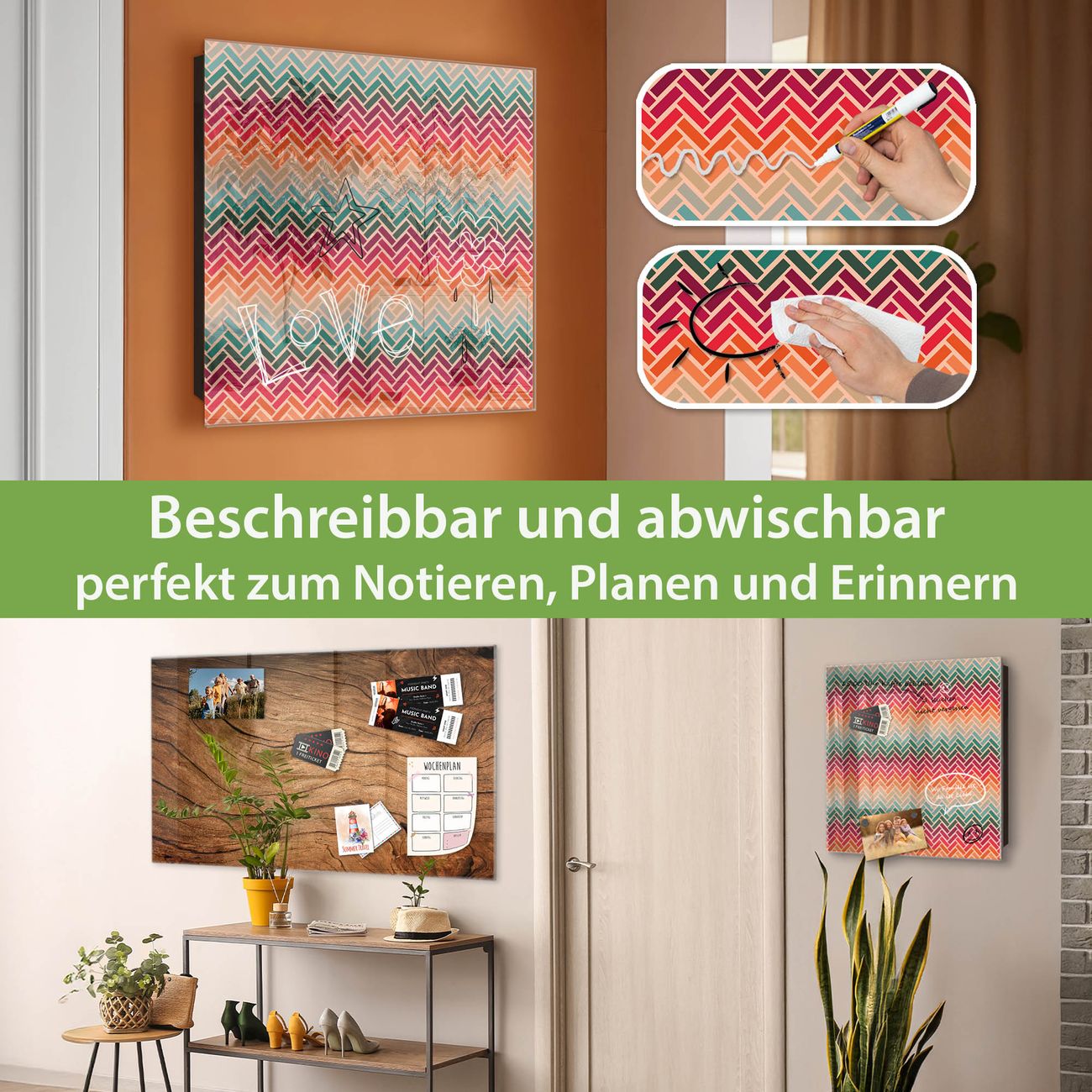 ✅ Magnetisch und mit Kreidestift beschreibbar, gehärtetes Glas, rechts angeschlagene TürOrdnung und Design in einem