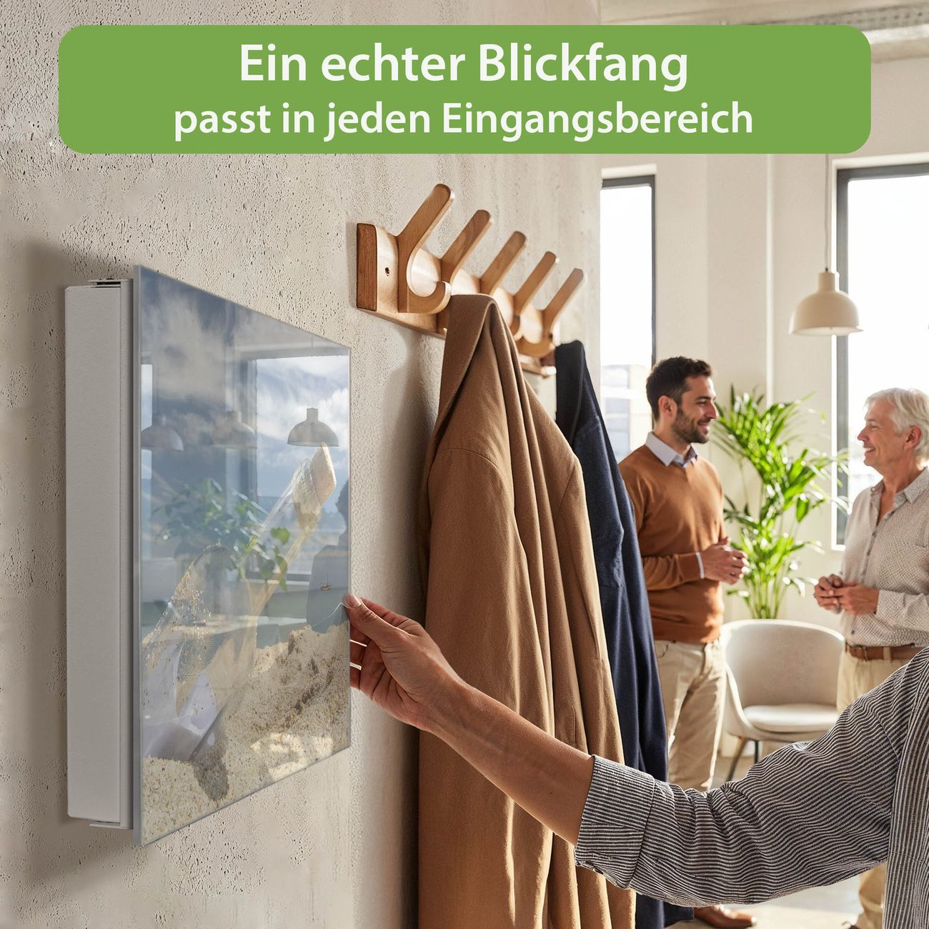 ✅ Magnetisch und mit Kreidestift beschreibbar, gehärtetes Glas, links angeschlagene TürOrdnung und Design in einem