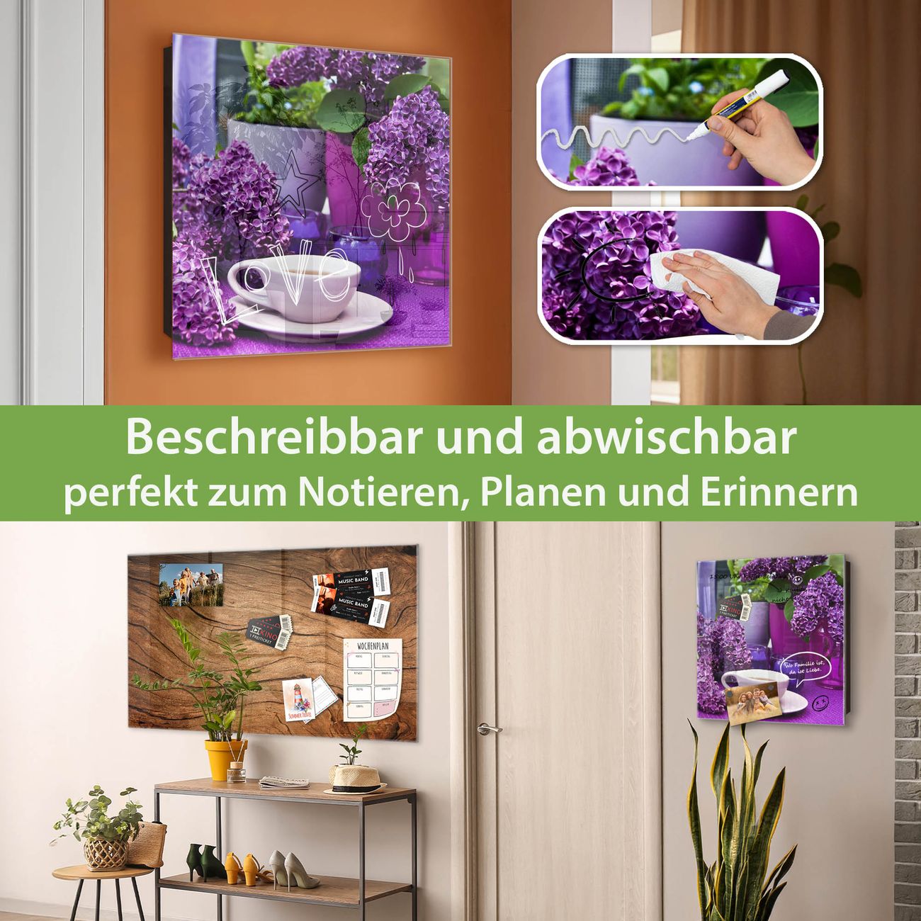 ✅ Magnetisch und mit Kreidestift beschreibbar, gehärtetes Glas, links angeschlagene TürOrdnung und Design in einem