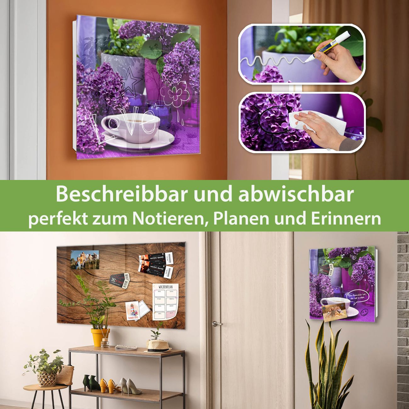 ✅ Magnetisch und mit Kreidestift beschreibbar, gehärtetes Glas, rechts angeschlagene TürOrdnung und Design in einem