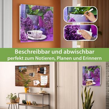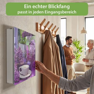 Bringe Ordnung und Eleganz in deinen Eingangsbereich mit dem banjado Schlüsselkasten Motiv Motiv Flieder. Die moderne Schlüsselbox kombiniert funktionales Design mit hochwertiger Verarbeitung und wird so zu einem echten Hingucker in Flur, Büro oder Ferienwohnung. ✅ Stilvolle Schlüsselaufbewahrung mit Glasfront im Motiv Motiv Flieder Der Design-Schlüsselkasten Motiv Motiv Flieder bietet Platz für bis zu 50 Schlüssel, die auf 5 stabilen Reihen mit je 10 Haken übersichtlich verstaut werden. Mit seinen kompakten Maßen von 30 x 30 x 5 cm passt die Schlüsselbox perfekt auch in kleinere Räume. Der weiß lackierte Stahlkorpus mit rechts angeschlagenem Türscharnier harmoniert mit der Glasfront und fügt sich nahtlos in jedes Wohnambiente ein. Ob als Schlüsselorganizer für Zuhause oder als praktische Lösung für Büros, Praxen und Gewerbe, der banjado Schlüsselkasten sorgt für Ordnung und Übersicht. Dank der magnetischen, mit Kreidestiften beschreibbaren Glasfront kannst du Notizen anheften oder Termine direkt auf der Oberfläche festhalten. Die Schlüsselbox Motiv Motiv Flieder zur Wandmontage wird inklusive Befestigungsmaterial geliefert und ist schnell angebracht. So hast du deine Schlüssel jederzeit griffbereit und zugleich stilvoll verstaut. Mit diesem banjado Schlüsselkasten Motiv Motiv Flieder kombinierst du praktische Aufbewahrung mit stilvollem Wohndesign. Ob privat oder geschäftlich, die Schlüsselbox sorgt für mehr Ordnung, Übersicht und ein wohnliches Ambiente.Vorteile im Überblick