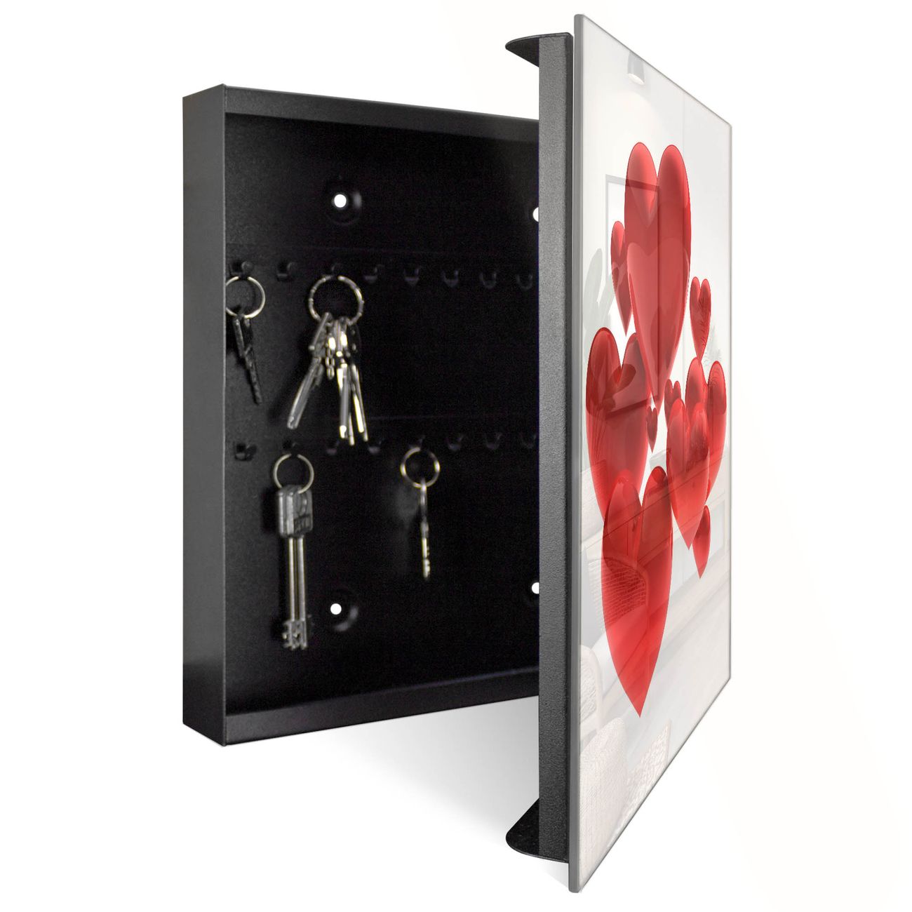 Schlüsselkasten Glas Motiv Fliegende Herzen