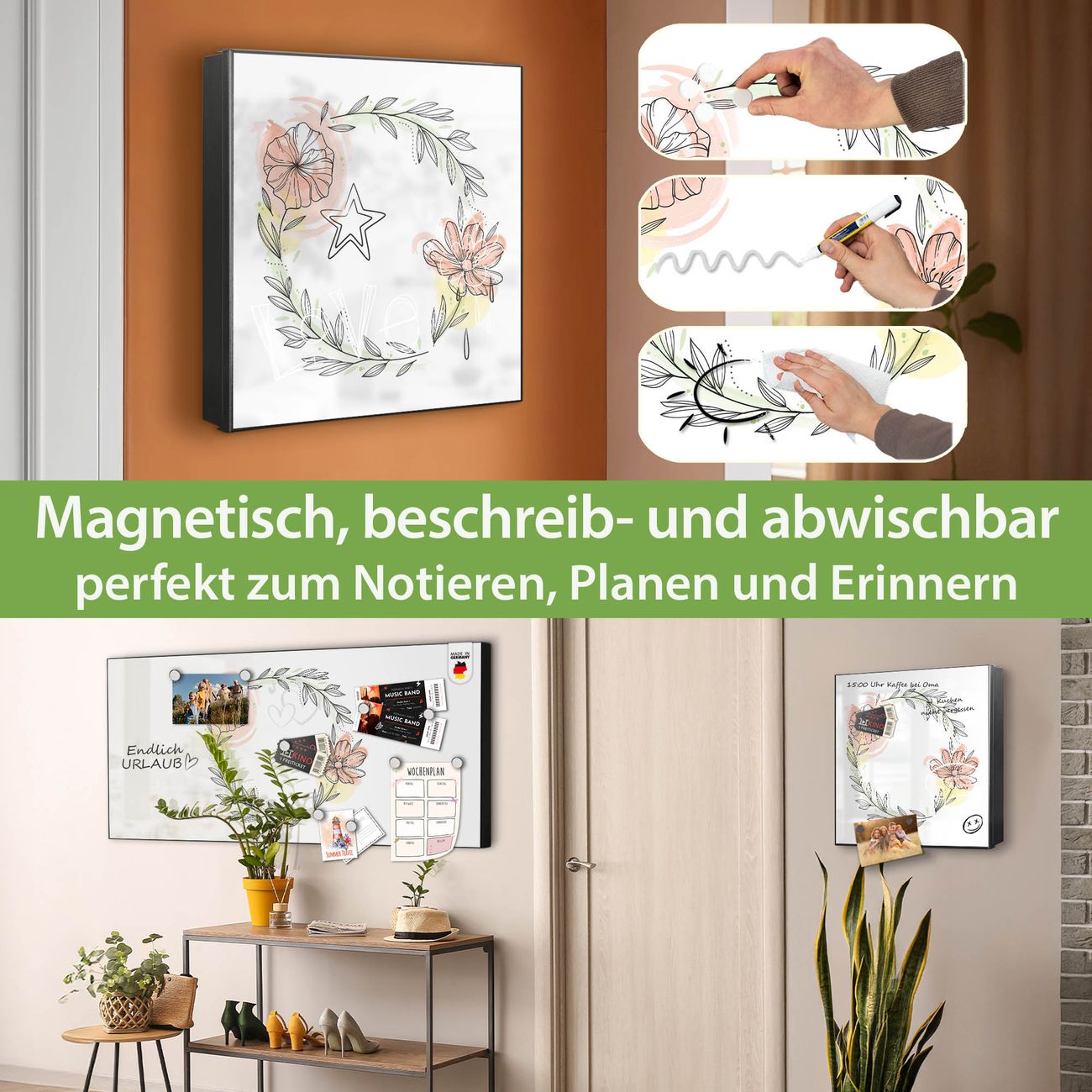 ✅ Magnetisch und mit Kreidestift beschreibbar, links angeschlagene TürOrdnung und Design in einem