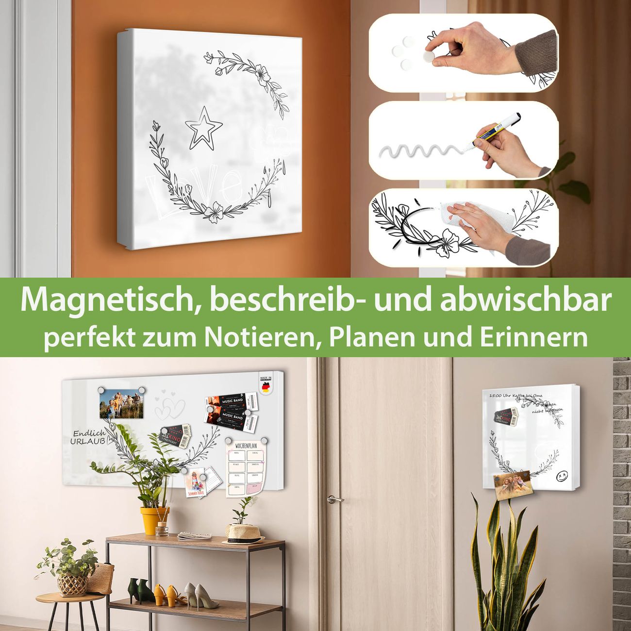 ✅ Magnetisch und mit Kreidestift beschreibbar, links angeschlagene TürOrdnung und Design in einem