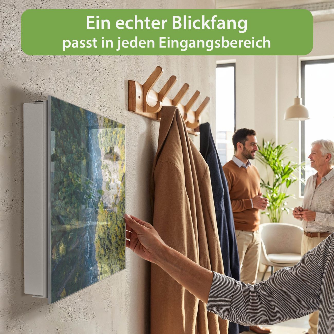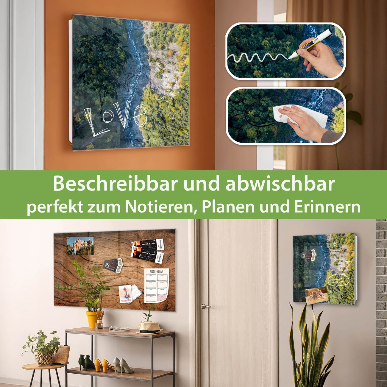 Bringe Ordnung und Eleganz in deinen Eingangsbereich mit dem banjado Schlüsselkasten Motiv Motiv Fluss im Tal. Die moderne Schlüsselbox kombiniert funktionales Design mit hochwertiger Verarbeitung und wird so zu einem echten Hingucker in Flur, Büro oder Ferienwohnung. ✅ Stilvolle Schlüsselaufbewahrung mit Glasfront im Motiv Motiv Fluss im Tal Der Design-Schlüsselkasten Motiv Motiv Fluss im Tal bietet Platz für bis zu 50 Schlüssel, die auf 5 stabilen Reihen mit je 10 Haken übersichtlich verstaut werden. Mit seinen kompakten Maßen von 30 x 30 x 5 cm passt die Schlüsselbox perfekt auch in kleinere Räume. Der weiß lackierte Stahlkorpus mit rechts angeschlagenem Türscharnier harmoniert mit der Glasfront und fügt sich nahtlos in jedes Wohnambiente ein. Ob als Schlüsselorganizer für Zuhause oder als praktische Lösung für Büros, Praxen und Gewerbe, der banjado Schlüsselkasten sorgt für Ordnung und Übersicht. Dank der magnetischen, mit Kreidestiften beschreibbaren Glasfront kannst du Notizen anheften oder Termine direkt auf der Oberfläche festhalten. Die Schlüsselbox Motiv Motiv Fluss im Tal zur Wandmontage wird inklusive Befestigungsmaterial geliefert und ist schnell angebracht. So hast du deine Schlüssel jederzeit griffbereit und zugleich stilvoll verstaut. Mit diesem banjado Schlüsselkasten Motiv Motiv Fluss im Tal kombinierst du praktische Aufbewahrung mit stilvollem Wohndesign. Ob privat oder geschäftlich, die Schlüsselbox sorgt für mehr Ordnung, Übersicht und ein wohnliches Ambiente.Vorteile im Überblick
