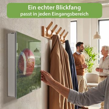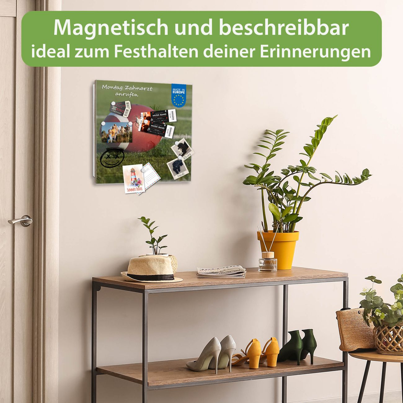 Bringe Ordnung und Eleganz in deinen Eingangsbereich mit dem banjado Schlüsselkasten Motiv Motiv Football . Die moderne Schlüsselbox kombiniert funktionales Design mit hochwertiger Verarbeitung und wird so zu einem echten Hingucker in Flur, Büro oder Ferienwohnung. ✅ Stilvolle Schlüsselaufbewahrung mit Glasfront im Motiv Motiv Football Der Design-Schlüsselkasten Motiv Motiv Football bietet Platz für bis zu 50 Schlüssel, die auf 5 stabilen Reihen mit je 10 Haken übersichtlich verstaut werden. Mit seinen kompakten Maßen von 30 x 30 x 5 cm passt die Schlüsselbox perfekt auch in kleinere Räume. Der weiß lackierte Stahlkorpus mit rechts angeschlagenem Türscharnier harmoniert mit der Glasfront und fügt sich nahtlos in jedes Wohnambiente ein. Ob als Schlüsselorganizer für Zuhause oder als praktische Lösung für Büros, Praxen und Gewerbe, der banjado Schlüsselkasten sorgt für Ordnung und Übersicht. Dank der magnetischen, mit Kreidestiften beschreibbaren Glasfront kannst du Notizen anheften oder Termine direkt auf der Oberfläche festhalten. Die Schlüsselbox Motiv Motiv Football zur Wandmontage wird inklusive Befestigungsmaterial geliefert und ist schnell angebracht. So hast du deine Schlüssel jederzeit griffbereit und zugleich stilvoll verstaut. Mit diesem banjado Schlüsselkasten Motiv Motiv Football kombinierst du praktische Aufbewahrung mit stilvollem Wohndesign. Ob privat oder geschäftlich, die Schlüsselbox sorgt für mehr Ordnung, Übersicht und ein wohnliches Ambiente.Vorteile im Überblick