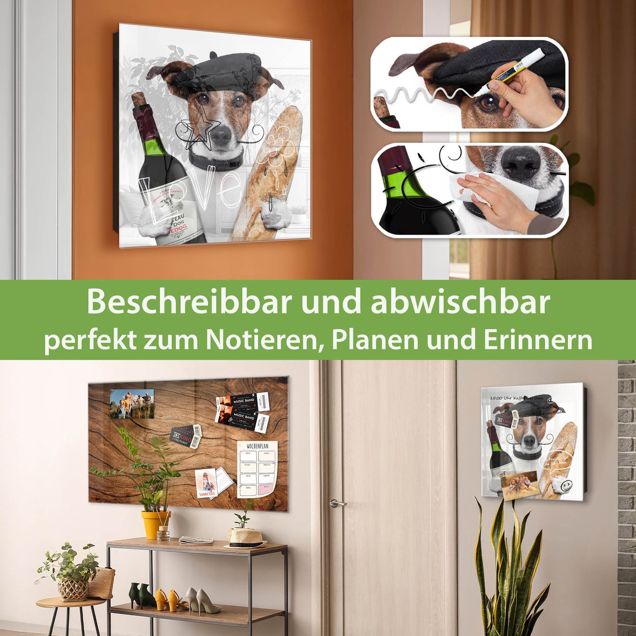 ✅ Magnetisch und mit Kreidestift beschreibbar, gehärtetes Glas, links angeschlagene TürOrdnung und Design in einem