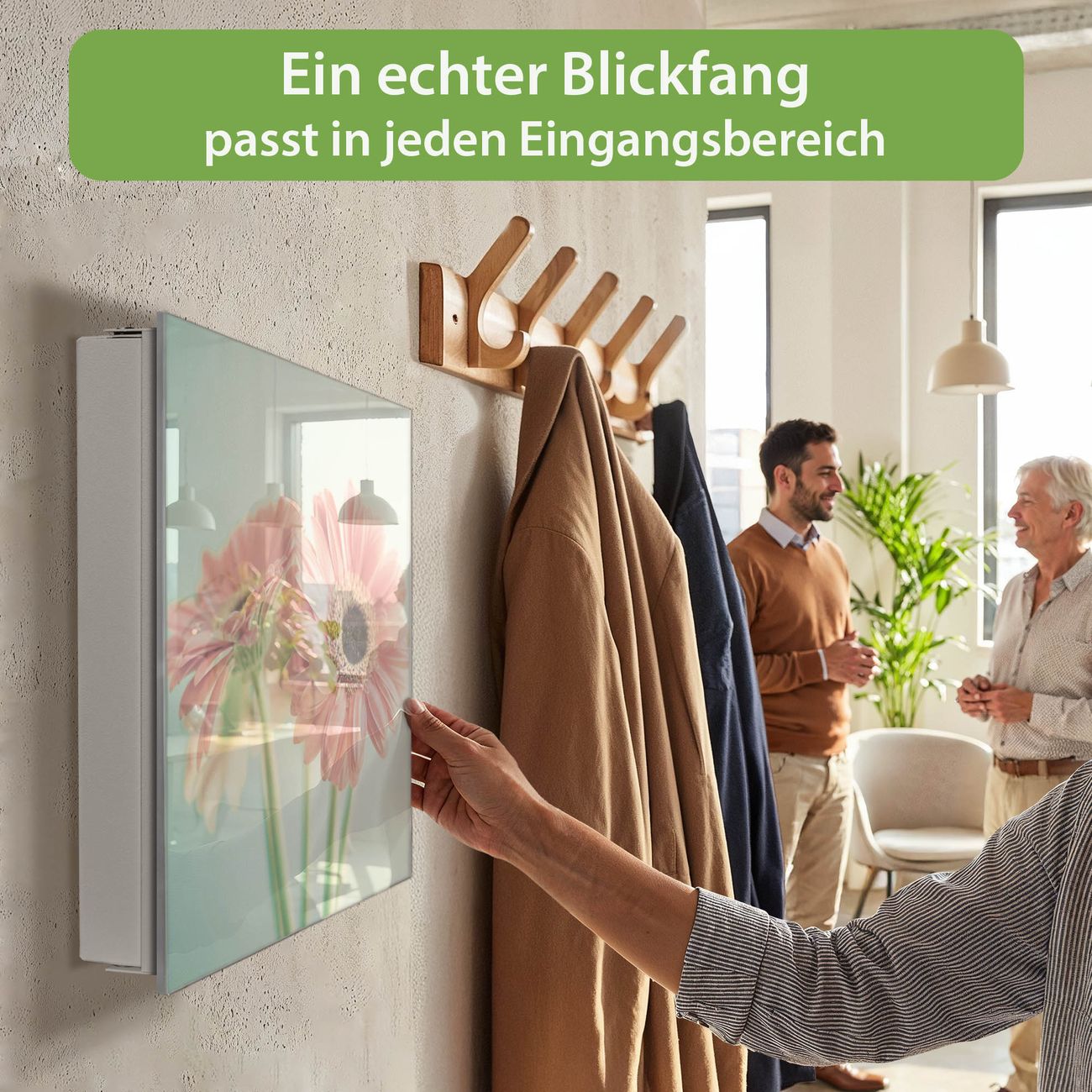 Bringe Ordnung und Eleganz in deinen Eingangsbereich mit dem banjado Schlüsselkasten Motiv Motiv Fünf Gerbera. Die moderne Schlüsselbox kombiniert funktionales Design mit hochwertiger Verarbeitung und wird so zu einem echten Hingucker in Flur, Büro oder Ferienwohnung. ✅ Stilvolle Schlüsselaufbewahrung mit Glasfront im Motiv Motiv Fünf Gerbera Der Design-Schlüsselkasten Motiv Motiv Fünf Gerbera bietet Platz für bis zu 50 Schlüssel, die auf 5 stabilen Reihen mit je 10 Haken übersichtlich verstaut werden. Mit seinen kompakten Maßen von 30 x 30 x 5 cm passt die Schlüsselbox perfekt auch in kleinere Räume. Der weiß lackierte Stahlkorpus mit rechts angeschlagenem Türscharnier harmoniert mit der Glasfront und fügt sich nahtlos in jedes Wohnambiente ein. Ob als Schlüsselorganizer für Zuhause oder als praktische Lösung für Büros, Praxen und Gewerbe, der banjado Schlüsselkasten sorgt für Ordnung und Übersicht. Dank der magnetischen, mit Kreidestiften beschreibbaren Glasfront kannst du Notizen anheften oder Termine direkt auf der Oberfläche festhalten. Die Schlüsselbox Motiv Motiv Fünf Gerbera zur Wandmontage wird inklusive Befestigungsmaterial geliefert und ist schnell angebracht. So hast du deine Schlüssel jederzeit griffbereit und zugleich stilvoll verstaut. Mit diesem banjado Schlüsselkasten Motiv Motiv Fünf Gerbera kombinierst du praktische Aufbewahrung mit stilvollem Wohndesign. Ob privat oder geschäftlich, die Schlüsselbox sorgt für mehr Ordnung, Übersicht und ein wohnliches Ambiente.Vorteile im Überblick