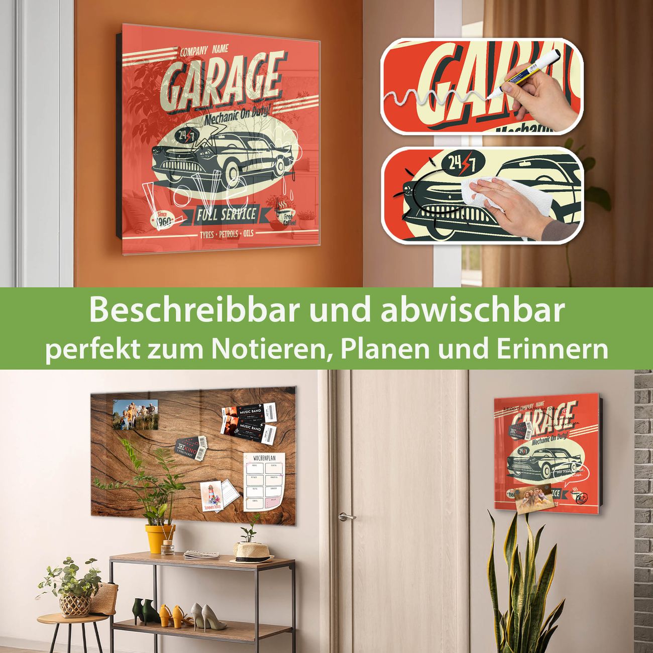 ✅ Magnetisch und mit Kreidestift beschreibbar, gehärtetes Glas, rechts angeschlagene TürOrdnung und Design in einem