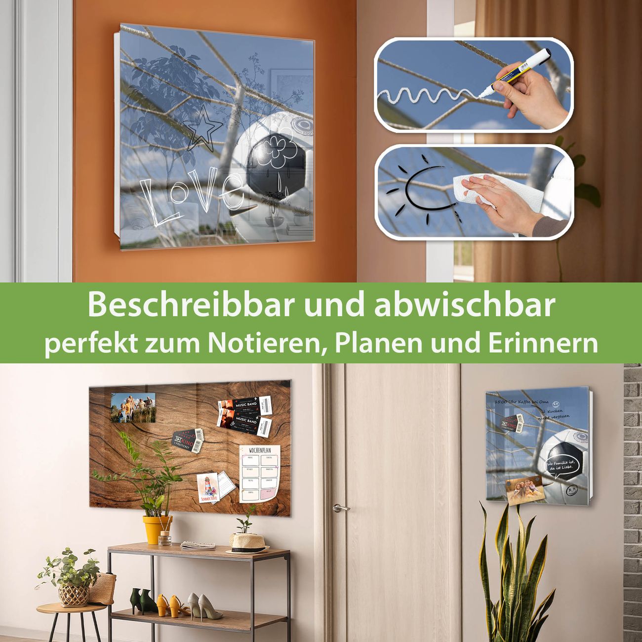 ✅ Magnetisch und mit Kreidestift beschreibbar, gehärtetes Glas, links angeschlagene TürOrdnung und Design in einem