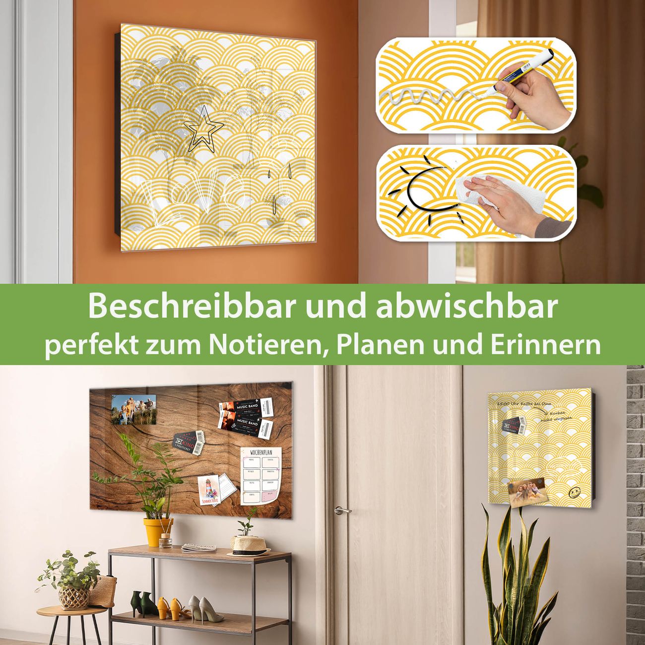 ✅ Magnetisch und mit Kreidestift beschreibbar, gehärtetes Glas, links angeschlagene TürOrdnung und Design in einem
