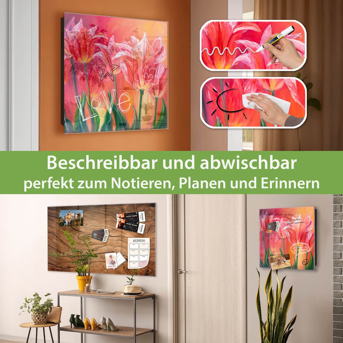 ✅ Magnetisch und mit Kreidestift beschreibbar, gehärtetes Glas, rechts angeschlagene TürOrdnung und Design in einem