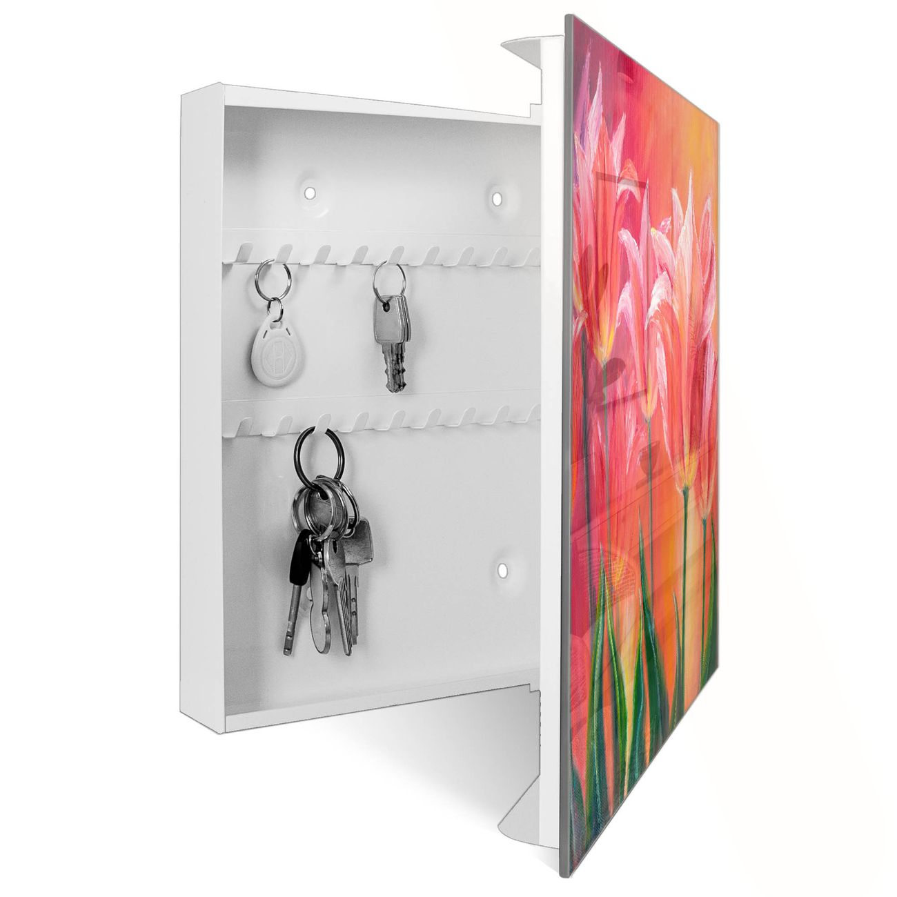 Schlüsselkasten Glas Motiv Gemalte Tulpen