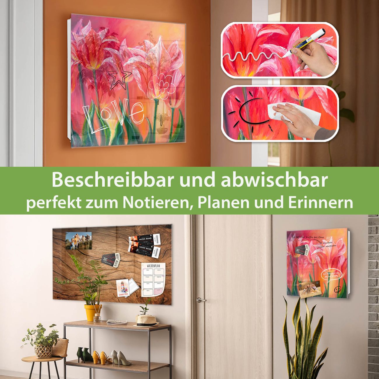 ✅ Magnetisch und mit Kreidestift beschreibbar, gehärtetes Glas, rechts angeschlagene TürOrdnung und Design in einem