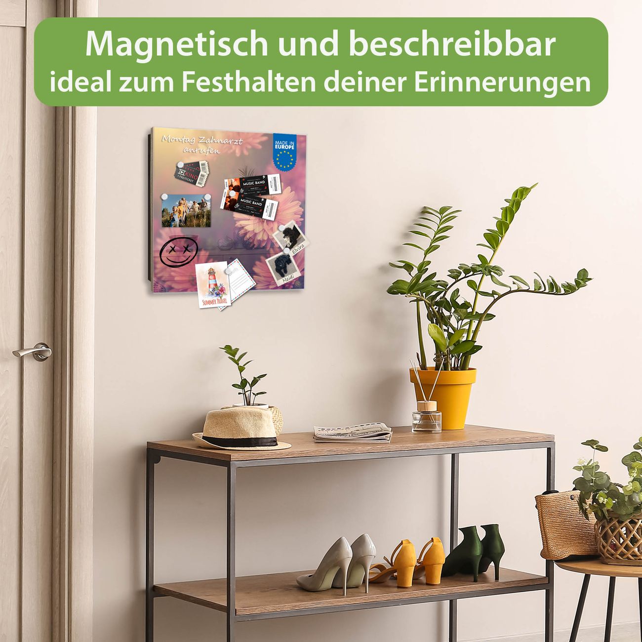 Bringe Ordnung und Eleganz in deinen Eingangsbereich mit dem banjado Schlüsselkasten Motiv Motiv Gerbera 2. Die moderne Schlüsselbox kombiniert funktionales Design mit hochwertiger Verarbeitung und wird so zu einem echten Hingucker in Flur, Büro oder Ferienwohnung. ✅ Stilvolle Schlüsselaufbewahrung mit Glasfront im Motiv Motiv Gerbera 2 Der Design-Schlüsselkasten Motiv Motiv Gerbera 2 bietet Platz für bis zu 50 Schlüssel, die auf 5 stabilen Reihen mit je 10 Haken übersichtlich verstaut werden. Mit seinen kompakten Maßen von 30 x 30 x 5 cm passt die Schlüsselbox perfekt auch in kleinere Räume. Der schwarz lackierte Stahlkorpus mit rechts angeschlagenem Türscharnier harmoniert mit der Glasfront und fügt sich nahtlos in jedes Wohnambiente ein. Ob als Schlüsselorganizer für Zuhause oder als praktische Lösung für Büros, Praxen und Gewerbe, der banjado Schlüsselkasten sorgt für Ordnung und Übersicht. Dank der magnetischen, mit Kreidestiften beschreibbaren Glasfront kannst du Notizen anheften oder Termine direkt auf der Oberfläche festhalten. Die Schlüsselbox Motiv Motiv Gerbera 2 zur Wandmontage wird inklusive Befestigungsmaterial geliefert und ist schnell angebracht. So hast du deine Schlüssel jederzeit griffbereit und zugleich stilvoll verstaut. Mit diesem banjado Schlüsselkasten Motiv Motiv Gerbera 2 kombinierst du praktische Aufbewahrung mit stilvollem Wohndesign. Ob privat oder geschäftlich, die Schlüsselbox sorgt für mehr Ordnung, Übersicht und ein wohnliches Ambiente.Vorteile im Überblick