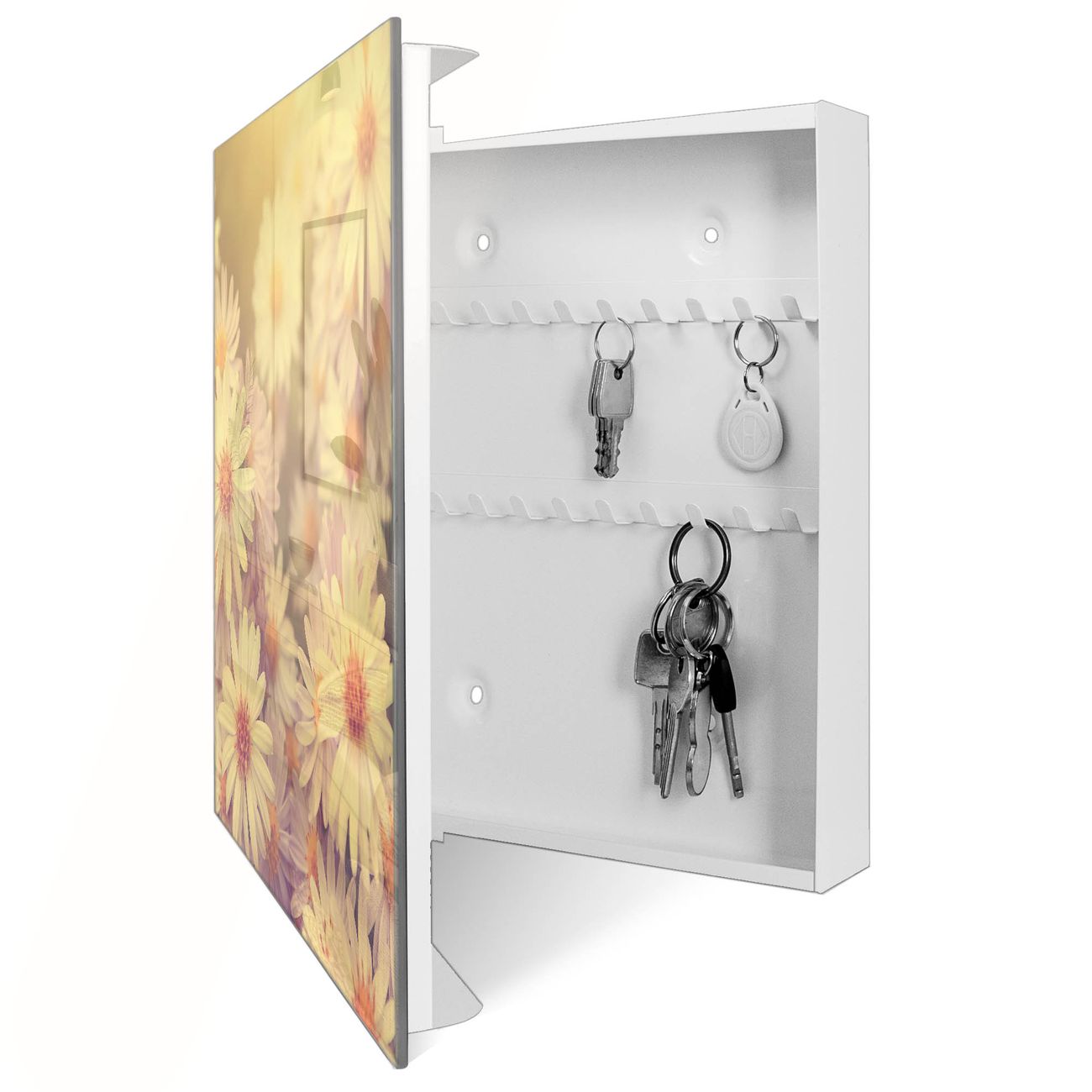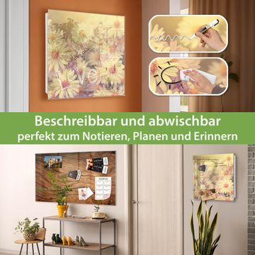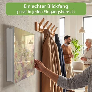 Bringe Ordnung und Eleganz in deinen Eingangsbereich mit dem banjado Schlüsselkasten Motiv Motiv Gerbera 3. Die moderne Schlüsselbox kombiniert funktionales Design mit hochwertiger Verarbeitung und wird so zu einem echten Hingucker in Flur, Büro oder Ferienwohnung. ✅ Stilvolle Schlüsselaufbewahrung mit Glasfront im Motiv Motiv Gerbera 3 Der Design-Schlüsselkasten Motiv Motiv Gerbera 3 bietet Platz für bis zu 50 Schlüssel, die auf 5 stabilen Reihen mit je 10 Haken übersichtlich verstaut werden. Mit seinen kompakten Maßen von 30 x 30 x 5 cm passt die Schlüsselbox perfekt auch in kleinere Räume. Der weiß lackierte Stahlkorpus mit rechts angeschlagenem Türscharnier harmoniert mit der Glasfront und fügt sich nahtlos in jedes Wohnambiente ein. Ob als Schlüsselorganizer für Zuhause oder als praktische Lösung für Büros, Praxen und Gewerbe, der banjado Schlüsselkasten sorgt für Ordnung und Übersicht. Dank der magnetischen, mit Kreidestiften beschreibbaren Glasfront kannst du Notizen anheften oder Termine direkt auf der Oberfläche festhalten. Die Schlüsselbox Motiv Motiv Gerbera 3 zur Wandmontage wird inklusive Befestigungsmaterial geliefert und ist schnell angebracht. So hast du deine Schlüssel jederzeit griffbereit und zugleich stilvoll verstaut. Mit diesem banjado Schlüsselkasten Motiv Motiv Gerbera 3 kombinierst du praktische Aufbewahrung mit stilvollem Wohndesign. Ob privat oder geschäftlich, die Schlüsselbox sorgt für mehr Ordnung, Übersicht und ein wohnliches Ambiente.Vorteile im Überblick
