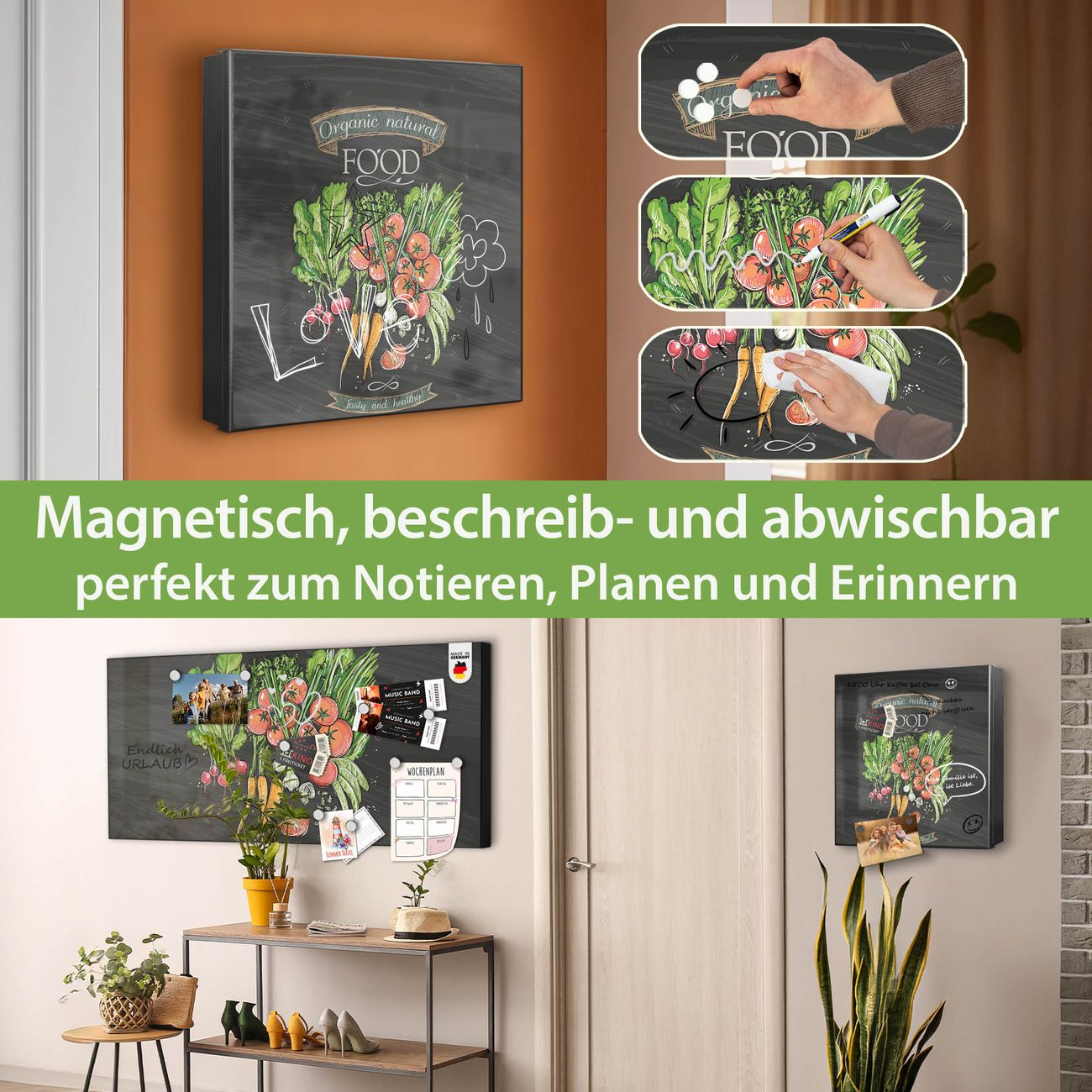 ✅ Magnetisch und mit Kreidestift beschreibbar, rechts angeschlagene TürOrdnung und Design in einem