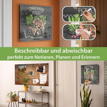 Bringe Ordnung und Eleganz in deinen Eingangsbereich mit dem banjado Schlüsselkasten Motiv Motiv Gesund Und Lecker. Die moderne Schlüsselbox kombiniert funktionales Design mit hochwertiger Verarbeitung und wird so zu einem echten Hingucker in Flur, Büro oder Ferienwohnung. ✅ Stilvolle Schlüsselaufbewahrung mit Glasfront im Motiv Motiv Gesund Und Lecker Der Design-Schlüsselkasten Motiv Motiv Gesund Und Lecker bietet Platz für bis zu 50 Schlüssel, die auf 5 stabilen Reihen mit je 10 Haken übersichtlich verstaut werden. Mit seinen kompakten Maßen von 30 x 30 x 5 cm passt die Schlüsselbox perfekt auch in kleinere Räume. Der schwarz lackierte Stahlkorpus mit rechts angeschlagenem Türscharnier harmoniert mit der Glasfront und fügt sich nahtlos in jedes Wohnambiente ein. Ob als Schlüsselorganizer für Zuhause oder als praktische Lösung für Büros, Praxen und Gewerbe, der banjado Schlüsselkasten sorgt für Ordnung und Übersicht. Dank der magnetischen, mit Kreidestiften beschreibbaren Glasfront kannst du Notizen anheften oder Termine direkt auf der Oberfläche festhalten. Die Schlüsselbox Motiv Motiv Gesund Und Lecker zur Wandmontage wird inklusive Befestigungsmaterial geliefert und ist schnell angebracht. So hast du deine Schlüssel jederzeit griffbereit und zugleich stilvoll verstaut. Mit diesem banjado Schlüsselkasten Motiv Motiv Gesund Und Lecker kombinierst du praktische Aufbewahrung mit stilvollem Wohndesign. Ob privat oder geschäftlich, die Schlüsselbox sorgt für mehr Ordnung, Übersicht und ein wohnliches Ambiente.Vorteile im Überblick