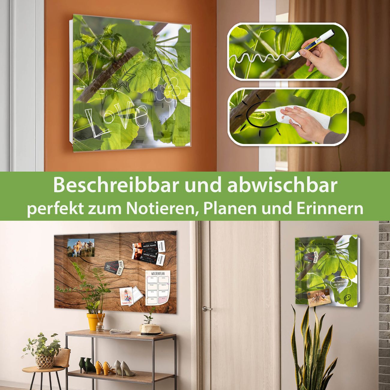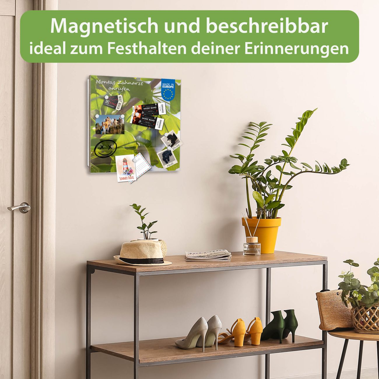 ✅ Magnetisch und mit Kreidestift beschreibbar, gehärtetes Glas, rechts angeschlagene TürOrdnung und Design in einem