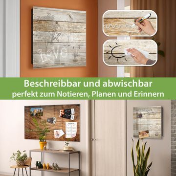 Bringe Ordnung und Eleganz in deinen Eingangsbereich mit dem banjado Schlüsselkasten Motiv Motiv Graues Holz. Die moderne Schlüsselbox kombiniert funktionales Design mit hochwertiger Verarbeitung und wird so zu einem echten Hingucker in Flur, Büro oder Ferienwohnung. ✅ Stilvolle Schlüsselaufbewahrung mit Glasfront im Motiv Motiv Graues Holz Der Design-Schlüsselkasten Motiv Motiv Graues Holz bietet Platz für bis zu 50 Schlüssel, die auf 5 stabilen Reihen mit je 10 Haken übersichtlich verstaut werden. Mit seinen kompakten Maßen von 30 x 30 x 5 cm passt die Schlüsselbox perfekt auch in kleinere Räume. Der schwarz lackierte Stahlkorpus mit rechts angeschlagenem Türscharnier harmoniert mit der Glasfront und fügt sich nahtlos in jedes Wohnambiente ein. Ob als Schlüsselorganizer für Zuhause oder als praktische Lösung für Büros, Praxen und Gewerbe, der banjado Schlüsselkasten sorgt für Ordnung und Übersicht. Dank der magnetischen, mit Kreidestiften beschreibbaren Glasfront kannst du Notizen anheften oder Termine direkt auf der Oberfläche festhalten. Die Schlüsselbox Motiv Motiv Graues Holz zur Wandmontage wird inklusive Befestigungsmaterial geliefert und ist schnell angebracht. So hast du deine Schlüssel jederzeit griffbereit und zugleich stilvoll verstaut. Mit diesem banjado Schlüsselkasten Motiv Motiv Graues Holz kombinierst du praktische Aufbewahrung mit stilvollem Wohndesign. Ob privat oder geschäftlich, die Schlüsselbox sorgt für mehr Ordnung, Übersicht und ein wohnliches Ambiente.Vorteile im Überblick