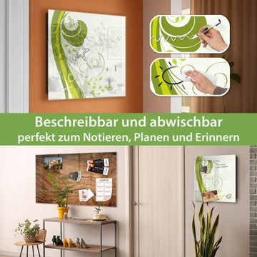 Bringe Ordnung und Eleganz in deinen Eingangsbereich mit dem banjado Schlüsselkasten Motiv Motiv Green Swirl. Die moderne Schlüsselbox kombiniert funktionales Design mit hochwertiger Verarbeitung und wird so zu einem echten Hingucker in Flur, Büro oder Ferienwohnung. ✅ Stilvolle Schlüsselaufbewahrung mit Glasfront im Motiv Motiv Green Swirl Der Design-Schlüsselkasten Motiv Motiv Green Swirl bietet Platz für bis zu 50 Schlüssel, die auf 5 stabilen Reihen mit je 10 Haken übersichtlich verstaut werden. Mit seinen kompakten Maßen von 30 x 30 x 5 cm passt die Schlüsselbox perfekt auch in kleinere Räume. Der schwarz lackierte Stahlkorpus mit rechts angeschlagenem Türscharnier harmoniert mit der Glasfront und fügt sich nahtlos in jedes Wohnambiente ein. Ob als Schlüsselorganizer für Zuhause oder als praktische Lösung für Büros, Praxen und Gewerbe, der banjado Schlüsselkasten sorgt für Ordnung und Übersicht. Dank der magnetischen, mit Kreidestiften beschreibbaren Glasfront kannst du Notizen anheften oder Termine direkt auf der Oberfläche festhalten. Die Schlüsselbox Motiv Motiv Green Swirl zur Wandmontage wird inklusive Befestigungsmaterial geliefert und ist schnell angebracht. So hast du deine Schlüssel jederzeit griffbereit und zugleich stilvoll verstaut. Mit diesem banjado Schlüsselkasten Motiv Motiv Green Swirl kombinierst du praktische Aufbewahrung mit stilvollem Wohndesign. Ob privat oder geschäftlich, die Schlüsselbox sorgt für mehr Ordnung, Übersicht und ein wohnliches Ambiente.Vorteile im Überblick