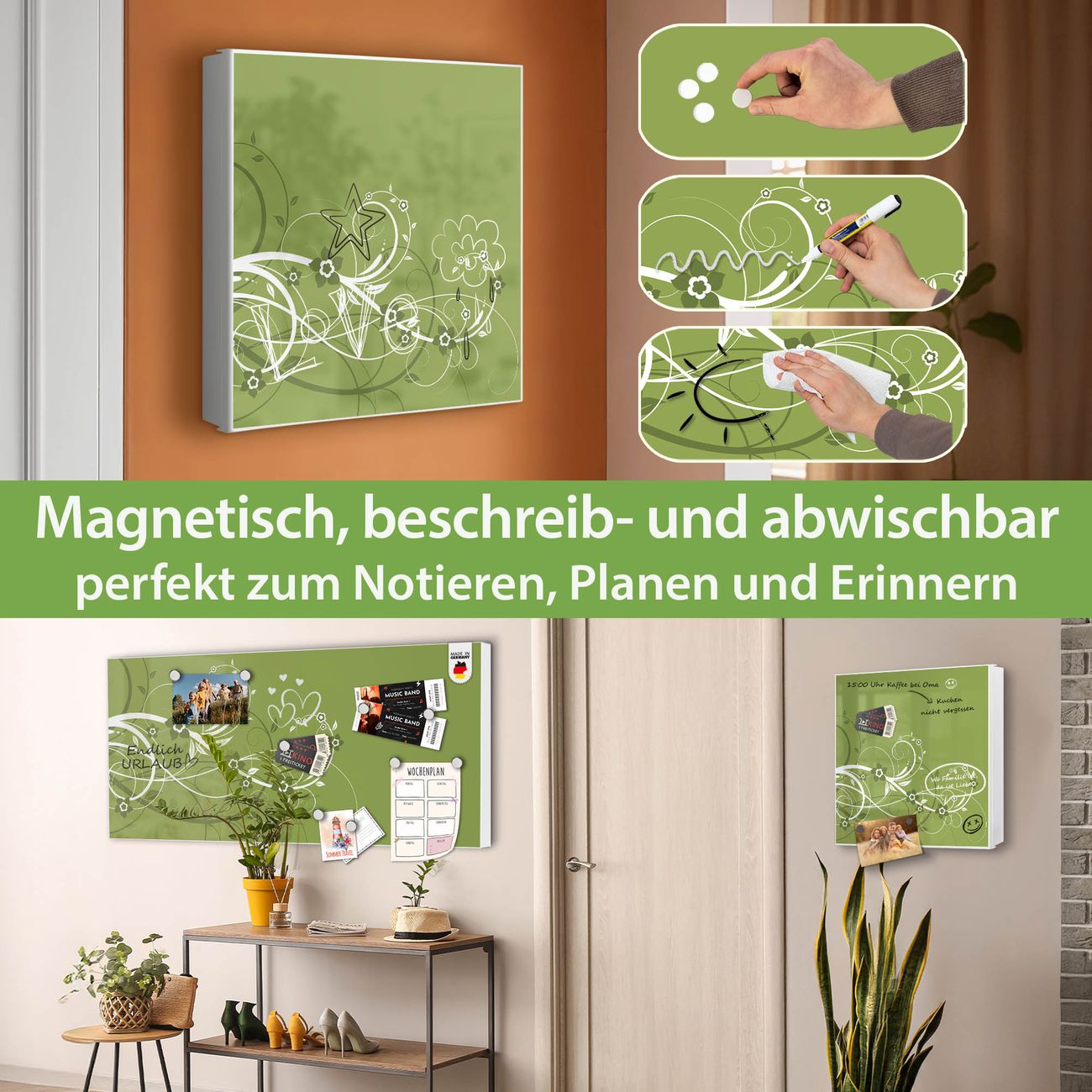 ✅ Magnetisch und mit Kreidestift beschreibbar, rechts angeschlagene TürOrdnung und Design in einem