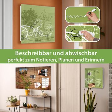 Bringe Ordnung und Eleganz in deinen Eingangsbereich mit dem banjado Schlüsselkasten Motiv Motiv Grüne Blüten. Die moderne Schlüsselbox kombiniert funktionales Design mit hochwertiger Verarbeitung und wird so zu einem echten Hingucker in Flur, Büro oder Ferienwohnung. ✅ Stilvolle Schlüsselaufbewahrung mit Glasfront im Motiv Motiv Grüne Blüten Der Design-Schlüsselkasten Motiv Motiv Grüne Blüten bietet Platz für bis zu 50 Schlüssel, die auf 5 stabilen Reihen mit je 10 Haken übersichtlich verstaut werden. Mit seinen kompakten Maßen von 30 x 30 x 5 cm passt die Schlüsselbox perfekt auch in kleinere Räume. Der weiß lackierte Stahlkorpus mit rechts angeschlagenem Türscharnier harmoniert mit der Glasfront und fügt sich nahtlos in jedes Wohnambiente ein. Ob als Schlüsselorganizer für Zuhause oder als praktische Lösung für Büros, Praxen und Gewerbe, der banjado Schlüsselkasten sorgt für Ordnung und Übersicht. Dank der magnetischen, mit Kreidestiften beschreibbaren Glasfront kannst du Notizen anheften oder Termine direkt auf der Oberfläche festhalten. Die Schlüsselbox Motiv Motiv Grüne Blüten zur Wandmontage wird inklusive Befestigungsmaterial geliefert und ist schnell angebracht. So hast du deine Schlüssel jederzeit griffbereit und zugleich stilvoll verstaut. Mit diesem banjado Schlüsselkasten Motiv Motiv Grüne Blüten kombinierst du praktische Aufbewahrung mit stilvollem Wohndesign. Ob privat oder geschäftlich, die Schlüsselbox sorgt für mehr Ordnung, Übersicht und ein wohnliches Ambiente.Vorteile im Überblick