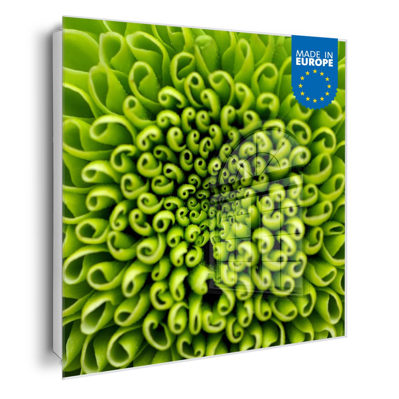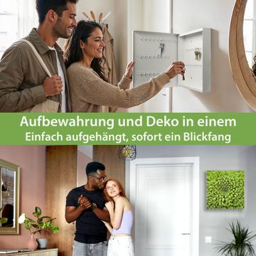 Bringe Ordnung und Eleganz in deinen Eingangsbereich mit dem banjado Schlüsselkasten Motiv Motiv Grüne Chrysantheme. Die moderne Schlüsselbox kombiniert funktionales Design mit hochwertiger Verarbeitung und wird so zu einem echten Hingucker in Flur, Büro oder Ferienwohnung. ✅ Stilvolle Schlüsselaufbewahrung mit Glasfront im Motiv Motiv Grüne Chrysantheme Der Design-Schlüsselkasten Motiv Motiv Grüne Chrysantheme bietet Platz für bis zu 50 Schlüssel, die auf 5 stabilen Reihen mit je 10 Haken übersichtlich verstaut werden. Mit seinen kompakten Maßen von 30 x 30 x 5 cm passt die Schlüsselbox perfekt auch in kleinere Räume. Der weiß lackierte Stahlkorpus mit rechts angeschlagenem Türscharnier harmoniert mit der Glasfront und fügt sich nahtlos in jedes Wohnambiente ein. Ob als Schlüsselorganizer für Zuhause oder als praktische Lösung für Büros, Praxen und Gewerbe, der banjado Schlüsselkasten sorgt für Ordnung und Übersicht. Dank der magnetischen, mit Kreidestiften beschreibbaren Glasfront kannst du Notizen anheften oder Termine direkt auf der Oberfläche festhalten. Die Schlüsselbox Motiv Motiv Grüne Chrysantheme zur Wandmontage wird inklusive Befestigungsmaterial geliefert und ist schnell angebracht. So hast du deine Schlüssel jederzeit griffbereit und zugleich stilvoll verstaut. Mit diesem banjado Schlüsselkasten Motiv Motiv Grüne Chrysantheme kombinierst du praktische Aufbewahrung mit stilvollem Wohndesign. Ob privat oder geschäftlich, die Schlüsselbox sorgt für mehr Ordnung, Übersicht und ein wohnliches Ambiente.Vorteile im Überblick