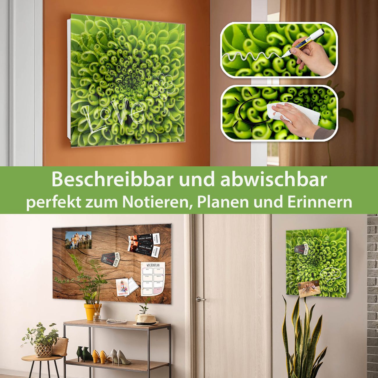 ✅ Magnetisch und mit Kreidestift beschreibbar, gehärtetes Glas, rechts angeschlagene TürOrdnung und Design in einem
