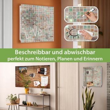 Bringe Ordnung und Eleganz in deinen Eingangsbereich mit dem banjado Schlüsselkasten Motiv Motiv Grüne Fliesen. Die moderne Schlüsselbox kombiniert funktionales Design mit hochwertiger Verarbeitung und wird so zu einem echten Hingucker in Flur, Büro oder Ferienwohnung. ✅ Stilvolle Schlüsselaufbewahrung mit Glasfront im Motiv Motiv Grüne Fliesen Der Design-Schlüsselkasten Motiv Motiv Grüne Fliesen bietet Platz für bis zu 50 Schlüssel, die auf 5 stabilen Reihen mit je 10 Haken übersichtlich verstaut werden. Mit seinen kompakten Maßen von 30 x 30 x 5 cm passt die Schlüsselbox perfekt auch in kleinere Räume. Der weiß lackierte Stahlkorpus mit rechts angeschlagenem Türscharnier harmoniert mit der Glasfront und fügt sich nahtlos in jedes Wohnambiente ein. Ob als Schlüsselorganizer für Zuhause oder als praktische Lösung für Büros, Praxen und Gewerbe, der banjado Schlüsselkasten sorgt für Ordnung und Übersicht. Dank der magnetischen, mit Kreidestiften beschreibbaren Glasfront kannst du Notizen anheften oder Termine direkt auf der Oberfläche festhalten. Die Schlüsselbox Motiv Motiv Grüne Fliesen zur Wandmontage wird inklusive Befestigungsmaterial geliefert und ist schnell angebracht. So hast du deine Schlüssel jederzeit griffbereit und zugleich stilvoll verstaut. Mit diesem banjado Schlüsselkasten Motiv Motiv Grüne Fliesen kombinierst du praktische Aufbewahrung mit stilvollem Wohndesign. Ob privat oder geschäftlich, die Schlüsselbox sorgt für mehr Ordnung, Übersicht und ein wohnliches Ambiente.Vorteile im Überblick