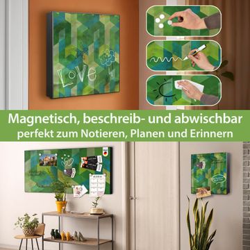 Bringe Ordnung und Eleganz in deinen Eingangsbereich mit dem banjado Schlüsselkasten Motiv Motiv Grüne Würfel. Die moderne Schlüsselbox kombiniert funktionales Design mit hochwertiger Verarbeitung und wird so zu einem echten Hingucker in Flur, Büro oder Ferienwohnung. ✅ Stilvolle Schlüsselaufbewahrung mit Motiv Motiv Grüne Würfel Der Design-Schlüsselkasten Motiv Motiv Grüne Würfel bietet Platz für bis zu 32 Schlüssel, die auf 4 stabilen Reihen mit je 8 Haken übersichtlich verstaut werden. Mit seinen kompakten Maßen von 30 x 30 x 5 cm passt die Schlüsselbox perfekt auch in kleinere Räume. Der schwarz lackierte Stahlkorpus mit links angeschlagenem Türscharnier harmoniert mit gedruckten Folie auf der Front und fügt sich nahtlos in jedes Wohnambiente ein. Ob als Schlüsselorganizer für Zuhause oder als praktische Lösung für Büros, Praxen und Gewerbe, der banjado Schlüsselkasten sorgt für Ordnung und Übersicht. Dank der magnetischen, mit Kreidestiften beschreibbaren Folie auf der Front kannst du Notizen anheften oder Termine direkt auf der Oberfläche festhalten. Die Schlüsselbox Motiv Motiv Grüne Würfel zur Wandmontage wird inklusive Befestigungsmaterial geliefert und ist schnell angebracht. So hast du deine Schlüssel jederzeit griffbereit und zugleich stilvoll verstaut. Mit diesem banjado Schlüsselkasten Motiv Motiv Grüne Würfel kombinierst du praktische Aufbewahrung mit stilvollem Wohndesign. Ob privat oder geschäftlich, die Schlüsselbox sorgt für mehr Ordnung, Übersicht und ein wohnliches Ambiente.Vorteile im Überblick