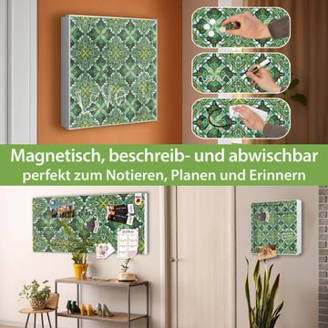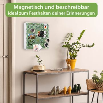 Bringe Ordnung und Eleganz in deinen Eingangsbereich mit dem banjado Schlüsselkasten Motiv Motiv Grünes Muster. Die moderne Schlüsselbox kombiniert funktionales Design mit hochwertiger Verarbeitung und wird so zu einem echten Hingucker in Flur, Büro oder Ferienwohnung. ✅ Stilvolle Schlüsselaufbewahrung mit Motiv Motiv Grünes Muster Der Design-Schlüsselkasten Motiv Motiv Grünes Muster bietet Platz für bis zu 32 Schlüssel, die auf 4 stabilen Reihen mit je 8 Haken übersichtlich verstaut werden. Mit seinen kompakten Maßen von 30 x 30 x 5 cm passt die Schlüsselbox perfekt auch in kleinere Räume. Der weiß lackierte Stahlkorpus mit links angeschlagenem Türscharnier harmoniert mit gedruckten Folie auf der Front und fügt sich nahtlos in jedes Wohnambiente ein. Ob als Schlüsselorganizer für Zuhause oder als praktische Lösung für Büros, Praxen und Gewerbe, der banjado Schlüsselkasten sorgt für Ordnung und Übersicht. Dank der magnetischen, mit Kreidestiften beschreibbaren Folie auf der Front kannst du Notizen anheften oder Termine direkt auf der Oberfläche festhalten. Die Schlüsselbox Motiv Motiv Grünes Muster zur Wandmontage wird inklusive Befestigungsmaterial geliefert und ist schnell angebracht. So hast du deine Schlüssel jederzeit griffbereit und zugleich stilvoll verstaut. Mit diesem banjado Schlüsselkasten Motiv Motiv Grünes Muster kombinierst du praktische Aufbewahrung mit stilvollem Wohndesign. Ob privat oder geschäftlich, die Schlüsselbox sorgt für mehr Ordnung, Übersicht und ein wohnliches Ambiente.Vorteile im Überblick