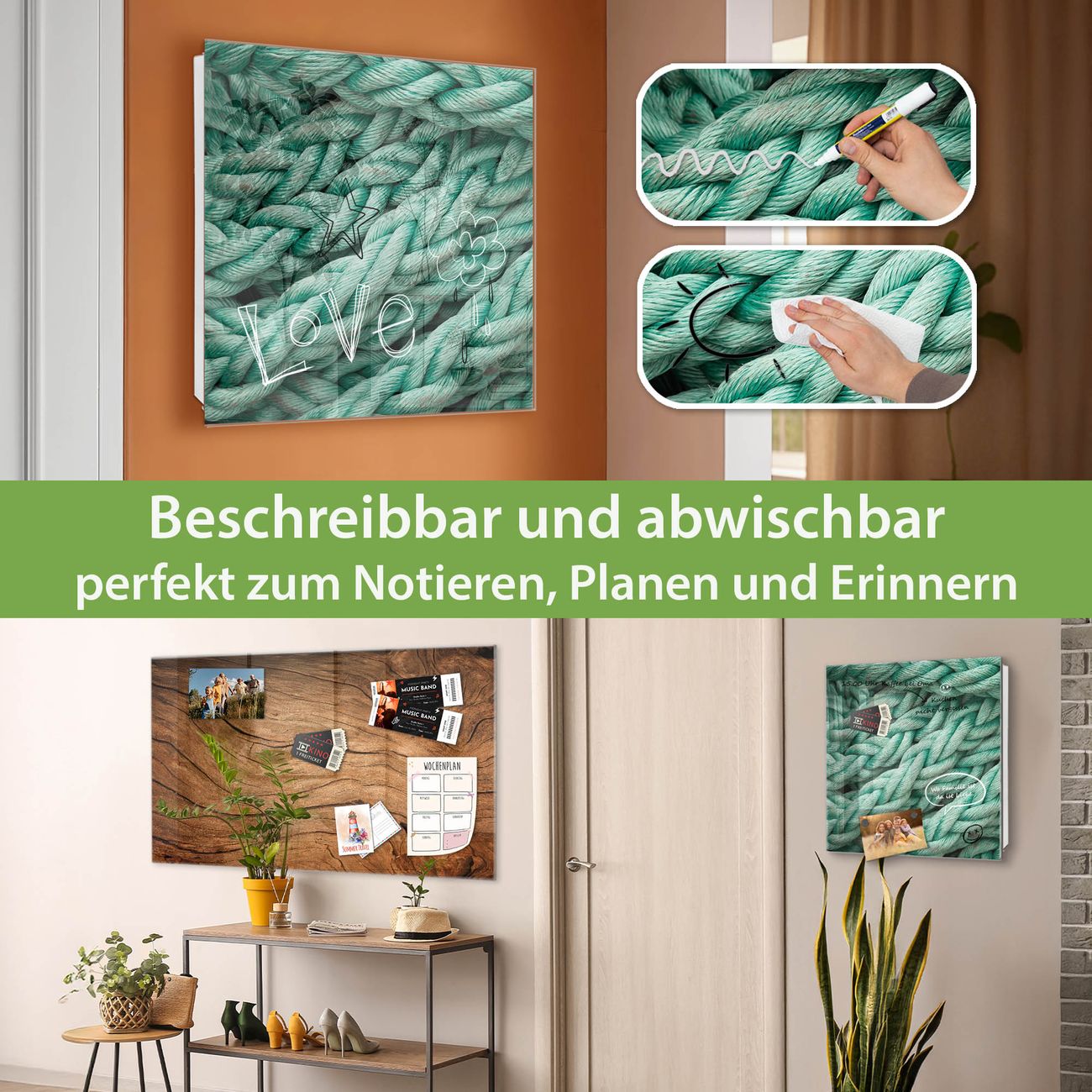 ✅ Magnetisch und mit Kreidestift beschreibbar, gehärtetes Glas, rechts angeschlagene TürOrdnung und Design in einem