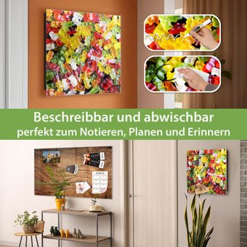 Bringe Ordnung und Eleganz in deinen Eingangsbereich mit dem banjado Schlüsselkasten Motiv Motiv Gummibaerchen. Die moderne Schlüsselbox kombiniert funktionales Design mit hochwertiger Verarbeitung und wird so zu einem echten Hingucker in Flur, Büro oder Ferienwohnung. ✅ Stilvolle Schlüsselaufbewahrung mit Glasfront im Motiv Motiv Gummibaerchen Der Design-Schlüsselkasten Motiv Motiv Gummibaerchen bietet Platz für bis zu 50 Schlüssel, die auf 5 stabilen Reihen mit je 10 Haken übersichtlich verstaut werden. Mit seinen kompakten Maßen von 30 x 30 x 5 cm passt die Schlüsselbox perfekt auch in kleinere Räume. Der schwarz lackierte Stahlkorpus mit rechts angeschlagenem Türscharnier harmoniert mit der Glasfront und fügt sich nahtlos in jedes Wohnambiente ein. Ob als Schlüsselorganizer für Zuhause oder als praktische Lösung für Büros, Praxen und Gewerbe, der banjado Schlüsselkasten sorgt für Ordnung und Übersicht. Dank der magnetischen, mit Kreidestiften beschreibbaren Glasfront kannst du Notizen anheften oder Termine direkt auf der Oberfläche festhalten. Die Schlüsselbox Motiv Motiv Gummibaerchen zur Wandmontage wird inklusive Befestigungsmaterial geliefert und ist schnell angebracht. So hast du deine Schlüssel jederzeit griffbereit und zugleich stilvoll verstaut. Mit diesem banjado Schlüsselkasten Motiv Motiv Gummibaerchen kombinierst du praktische Aufbewahrung mit stilvollem Wohndesign. Ob privat oder geschäftlich, die Schlüsselbox sorgt für mehr Ordnung, Übersicht und ein wohnliches Ambiente.Vorteile im Überblick