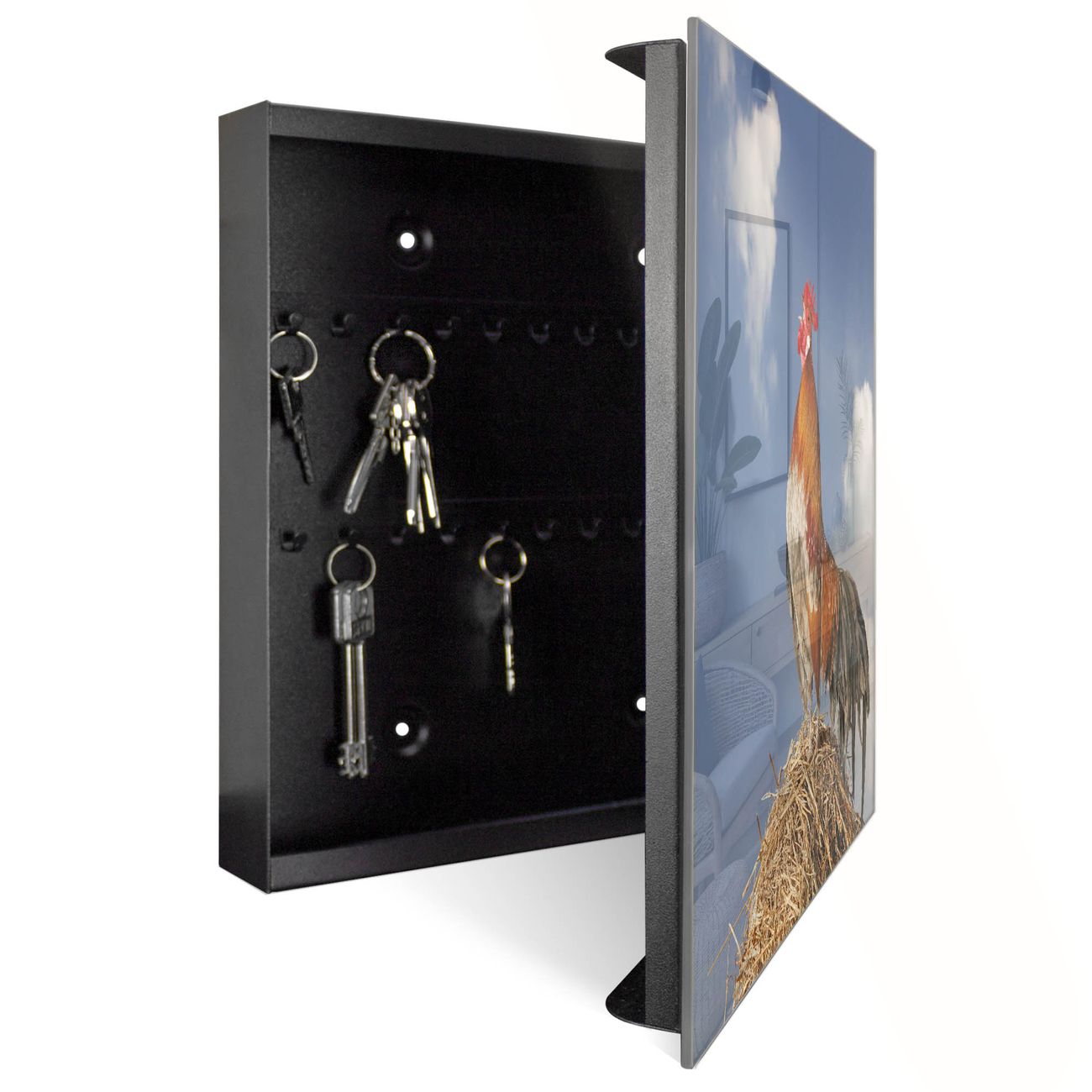 Schlüsselkasten Glas Motiv Hahn